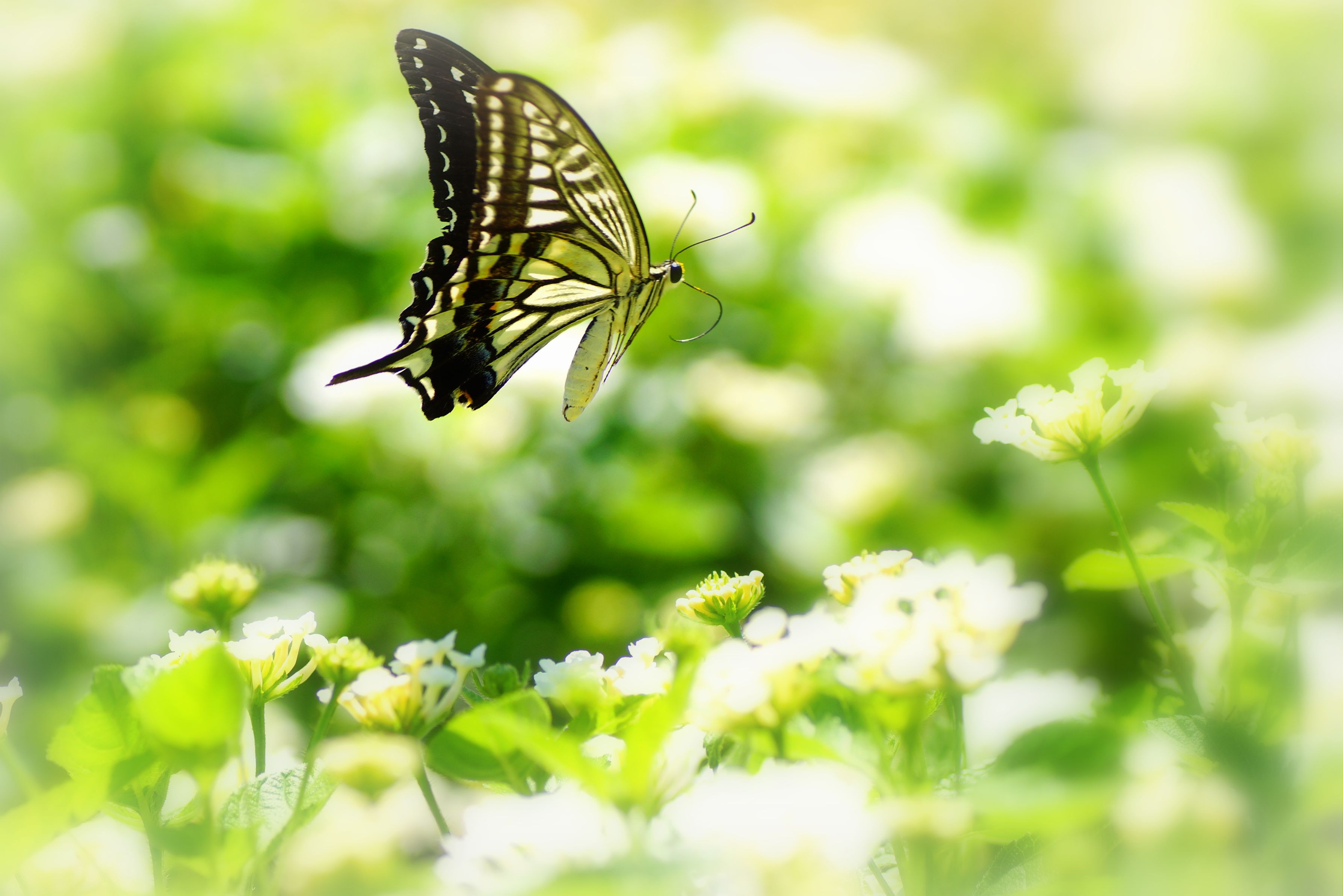 お花畑を賑わせてくれるナミアゲハです。 (約2倍でトリミングしてます)