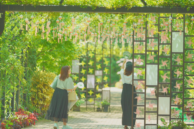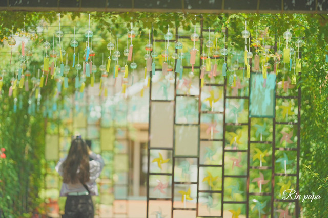 風鈴と遊ぶお嬢さん