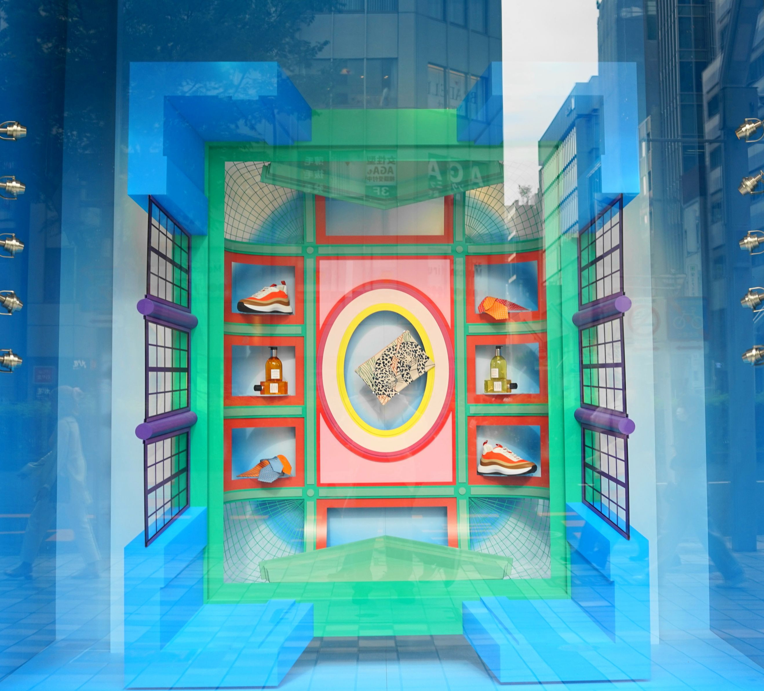 赤いリボンのあるショーウィンドー