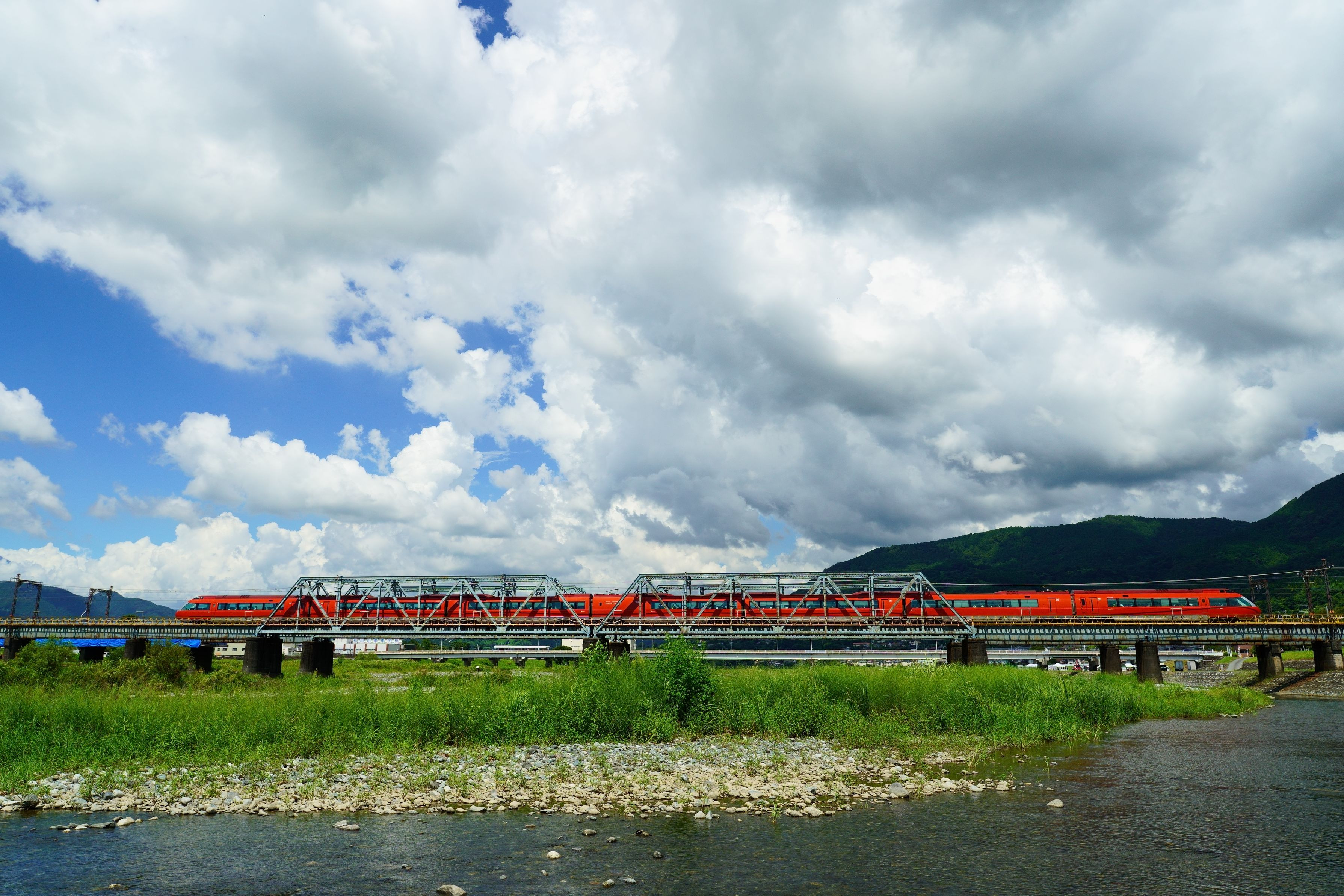 酒匂川橋梁を行くGSEです。8月ももう終わりだというのにまだ暑いです。