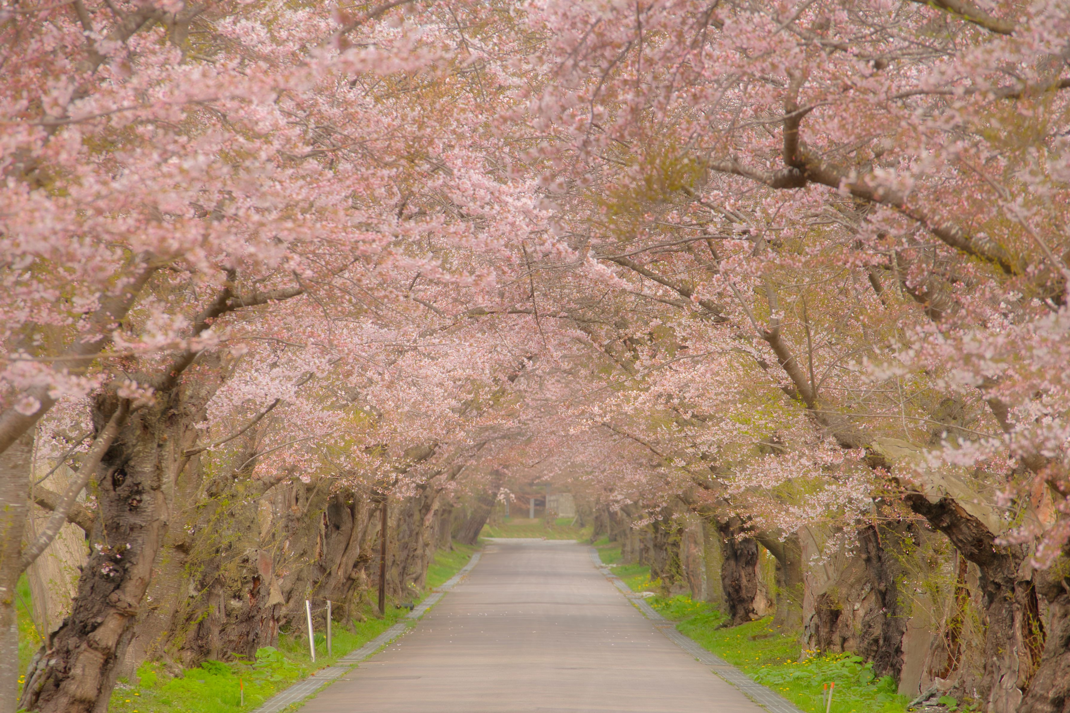 人気のない朝に桜の名所で撮影しました。700m以上の桜街道は見どころ満載でした。