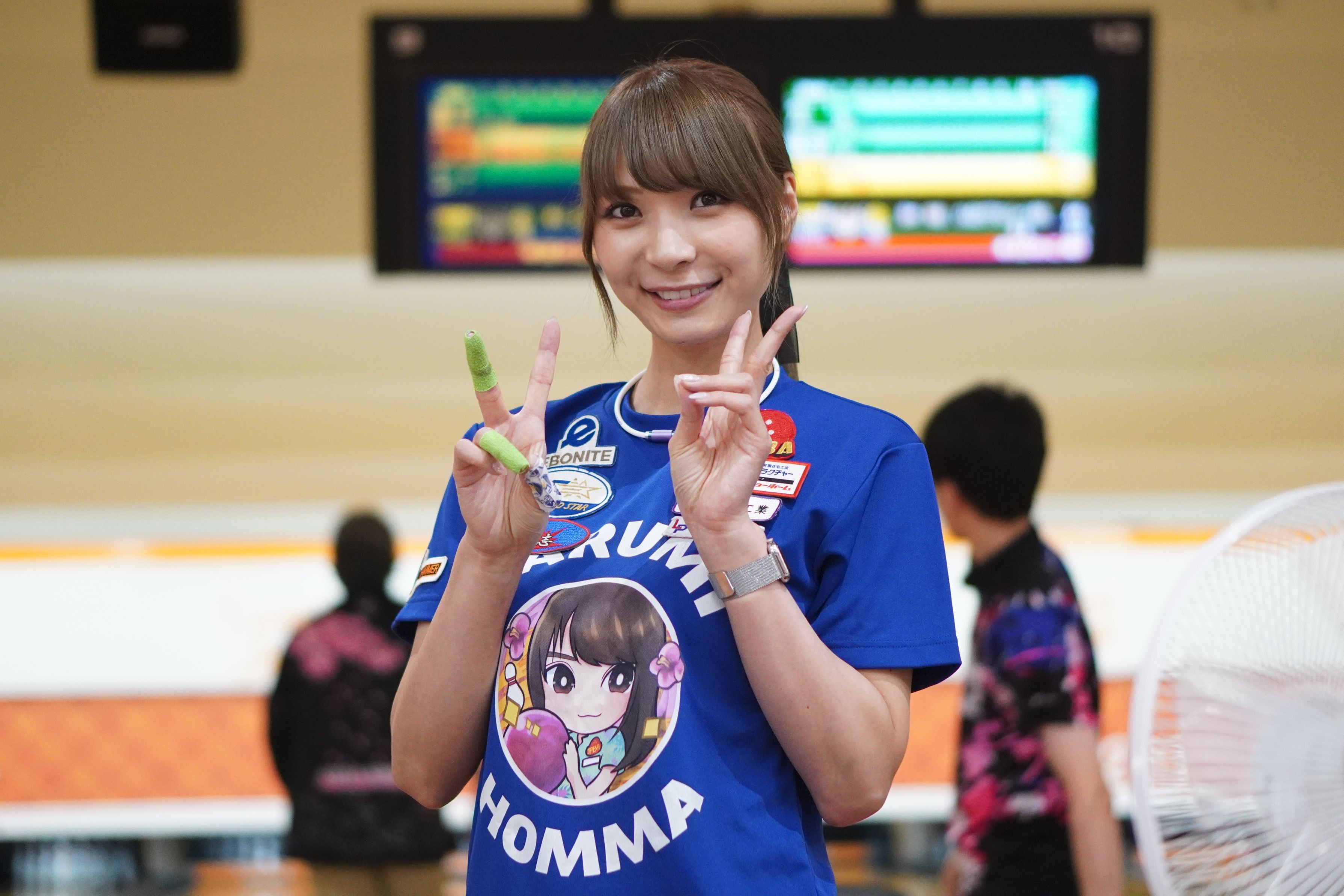 ボウリングの合間に… ついに、徐々にマスク無しに♥ モデル:プロボウラー 本間成美