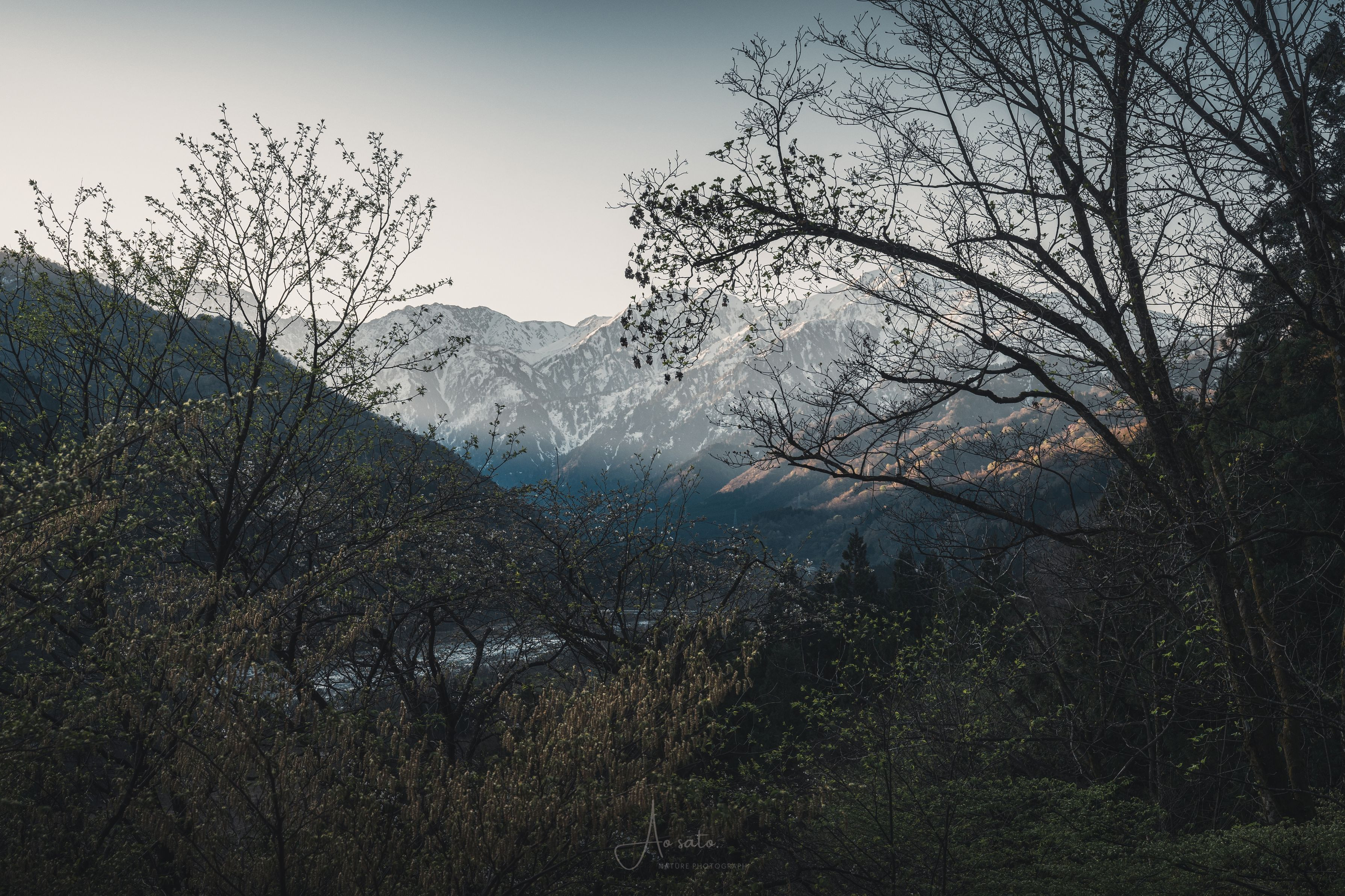 自分がいる場所はまだ日が当たらず薄暗い中、奥の山は一足先に朝を迎えてました。