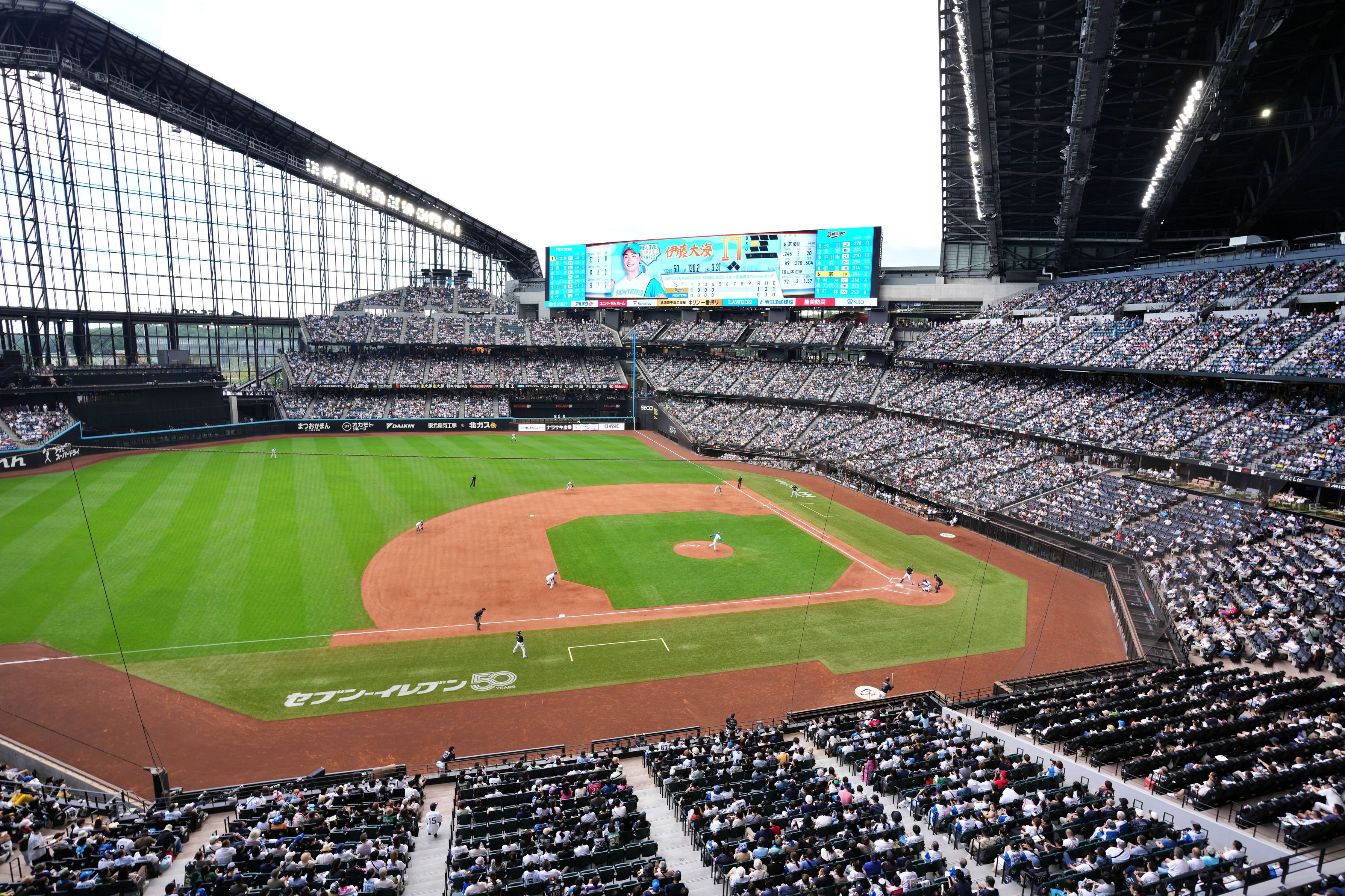 2023/9/2 エスコンフィールド北海道 日本ハム・オリックス 試合の途中で雨が降ってきたので、屋根が途中で閉じられた珍しいシーンを目撃しました