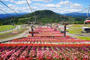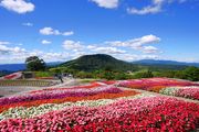 頂上に咲き誇るサンパチェンスの花 空と山と花の調和