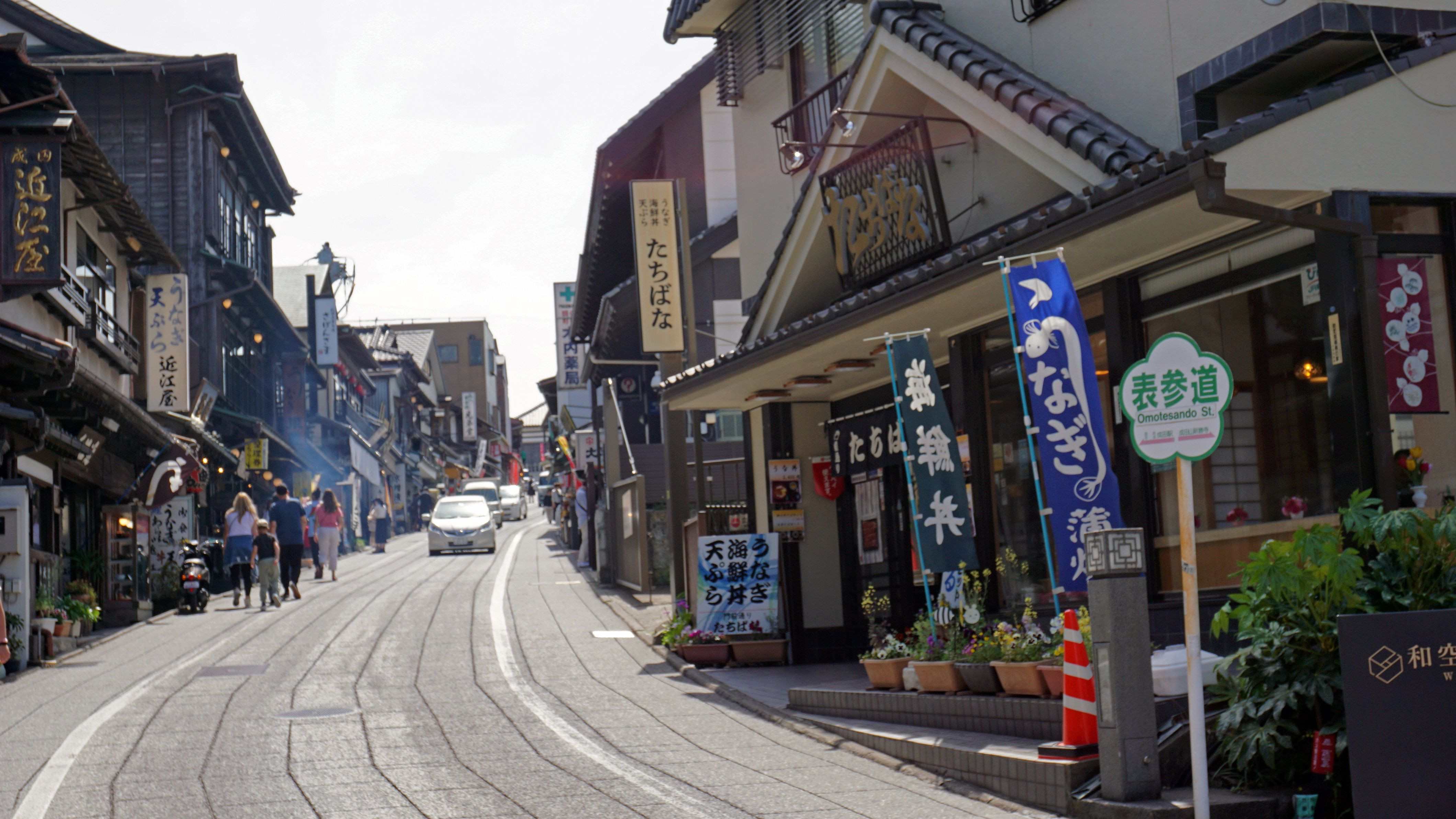 成田山新勝寺の表参道です。想像していたのと違い、車の通りが結構多いです。