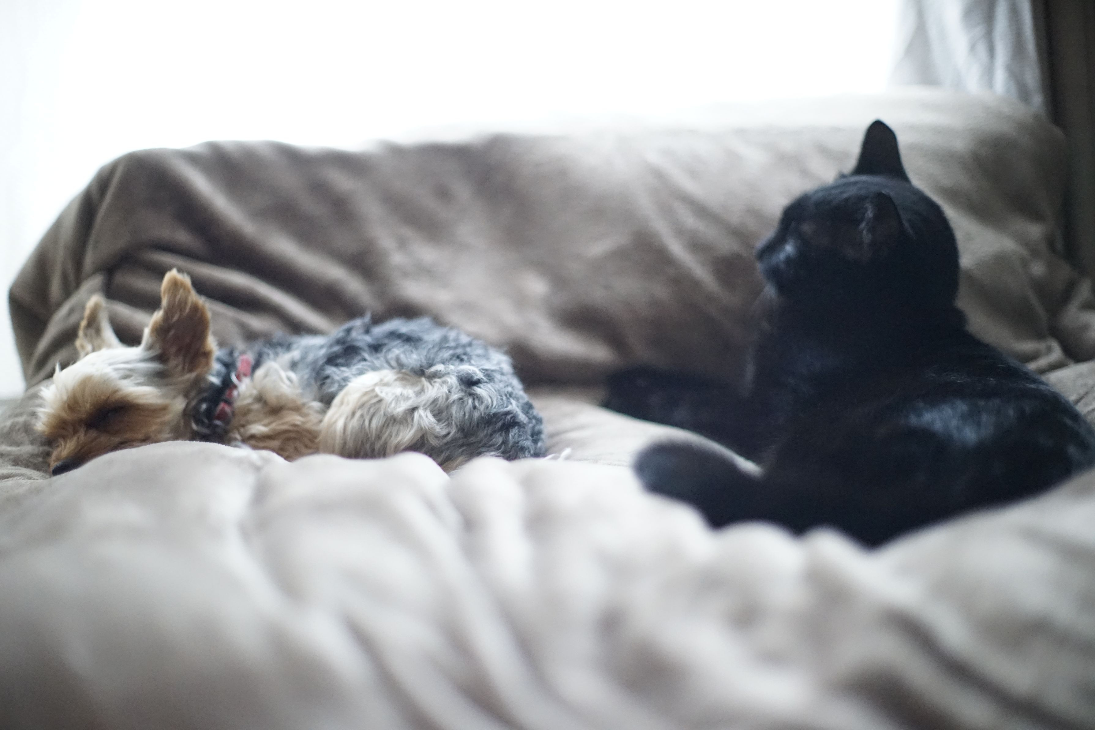我が家の犬猫です。 午後の時間ががまったりと流れている・・・・そんな写真。 ミノルタ50mm f1.4で撮影。