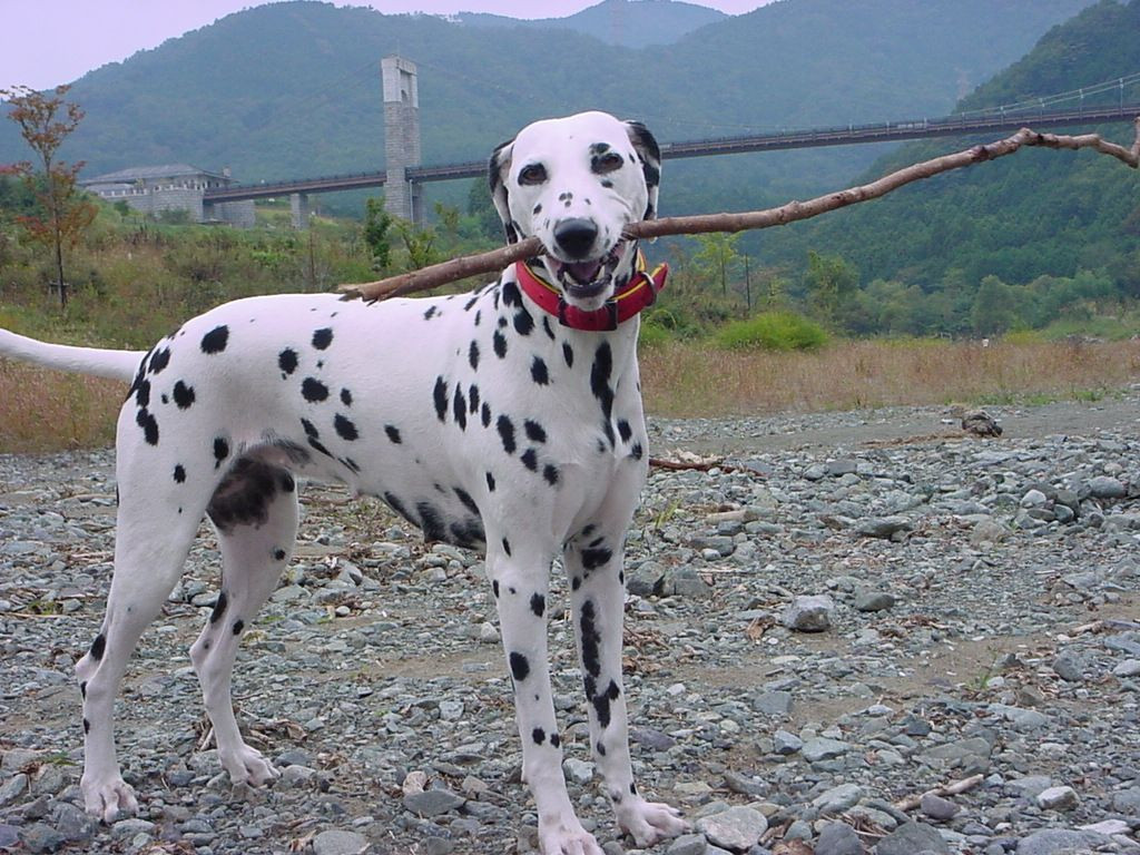 以前飼っていたダルメシアンです。木の棒切れが好きでよくくわえて遊びました。