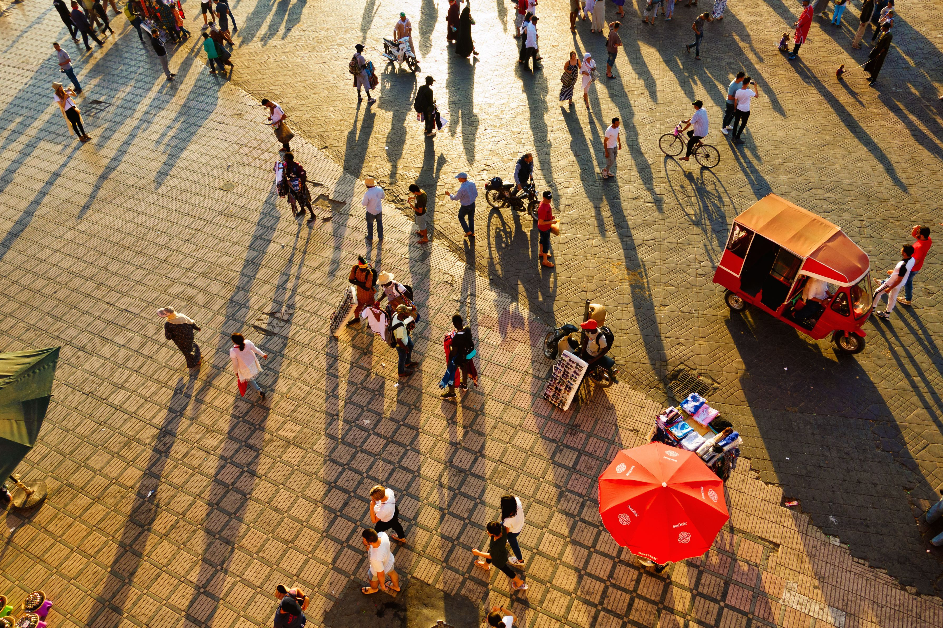 カフェの屋上から見たジャマエルフナ広場は活気にあふれていた。