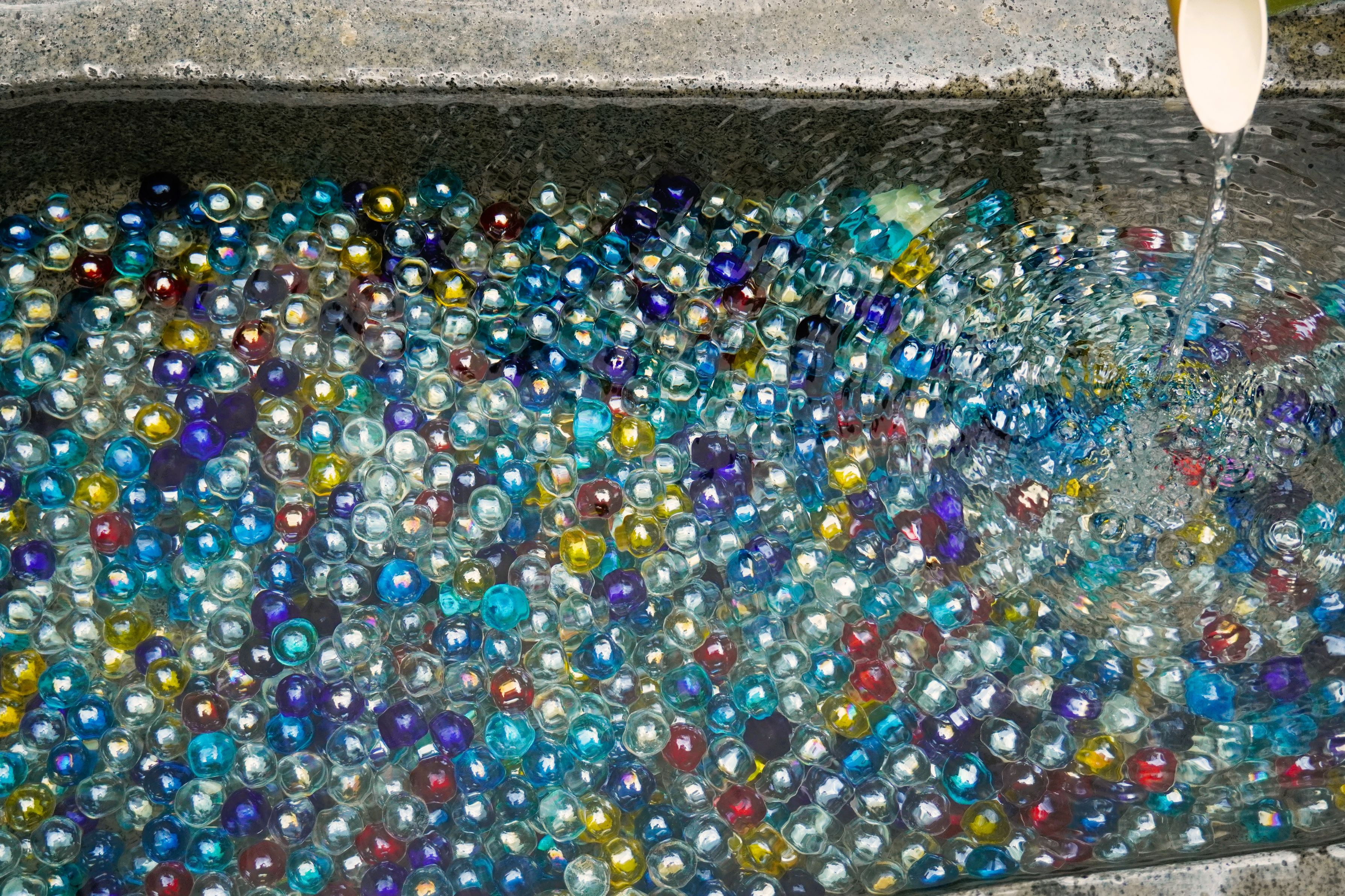 南信州飯田の元善光寺に参拝しました。手水舎の水鏡の中には見慣れたガラス玉が。