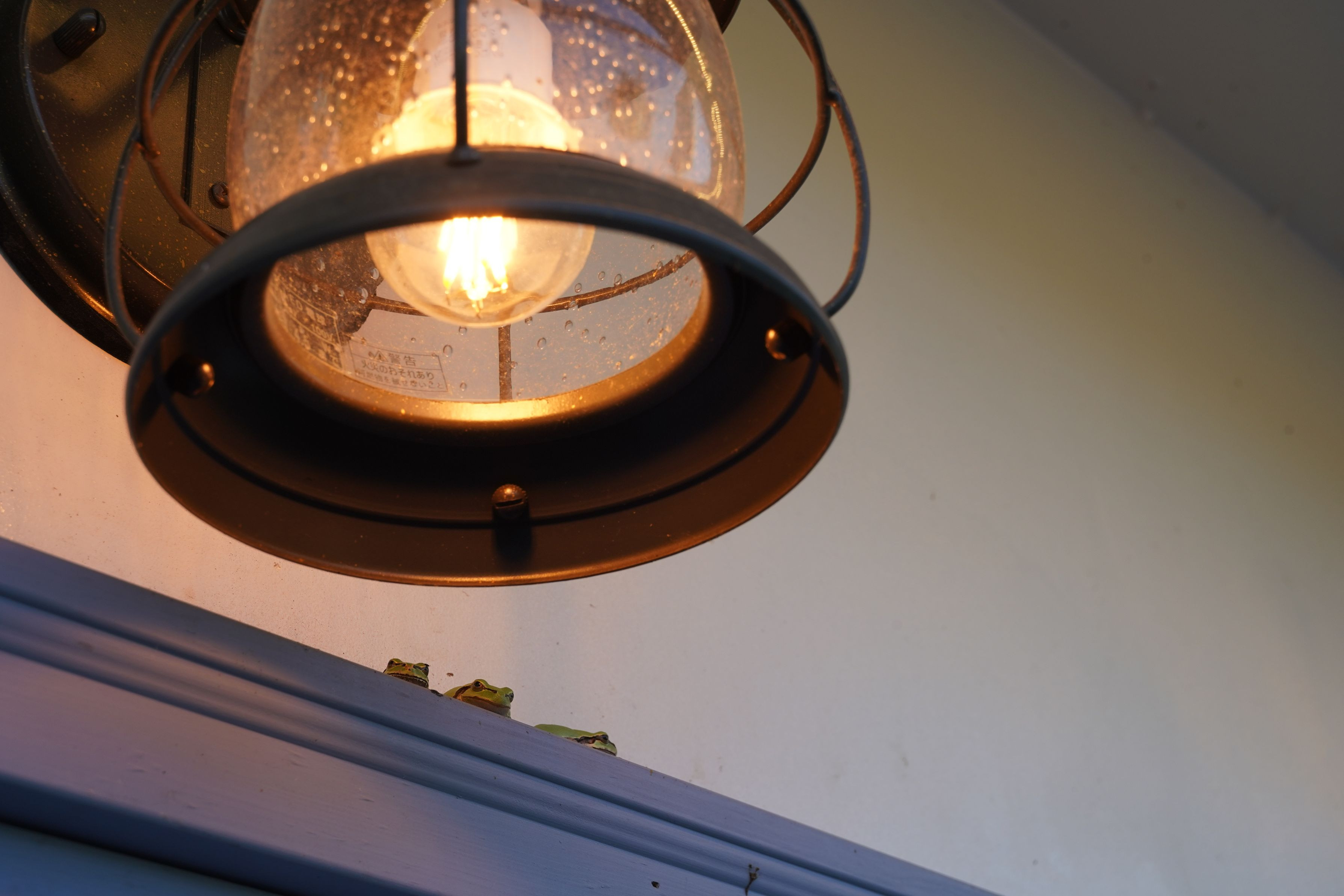 ドアの上にカエルが3匹