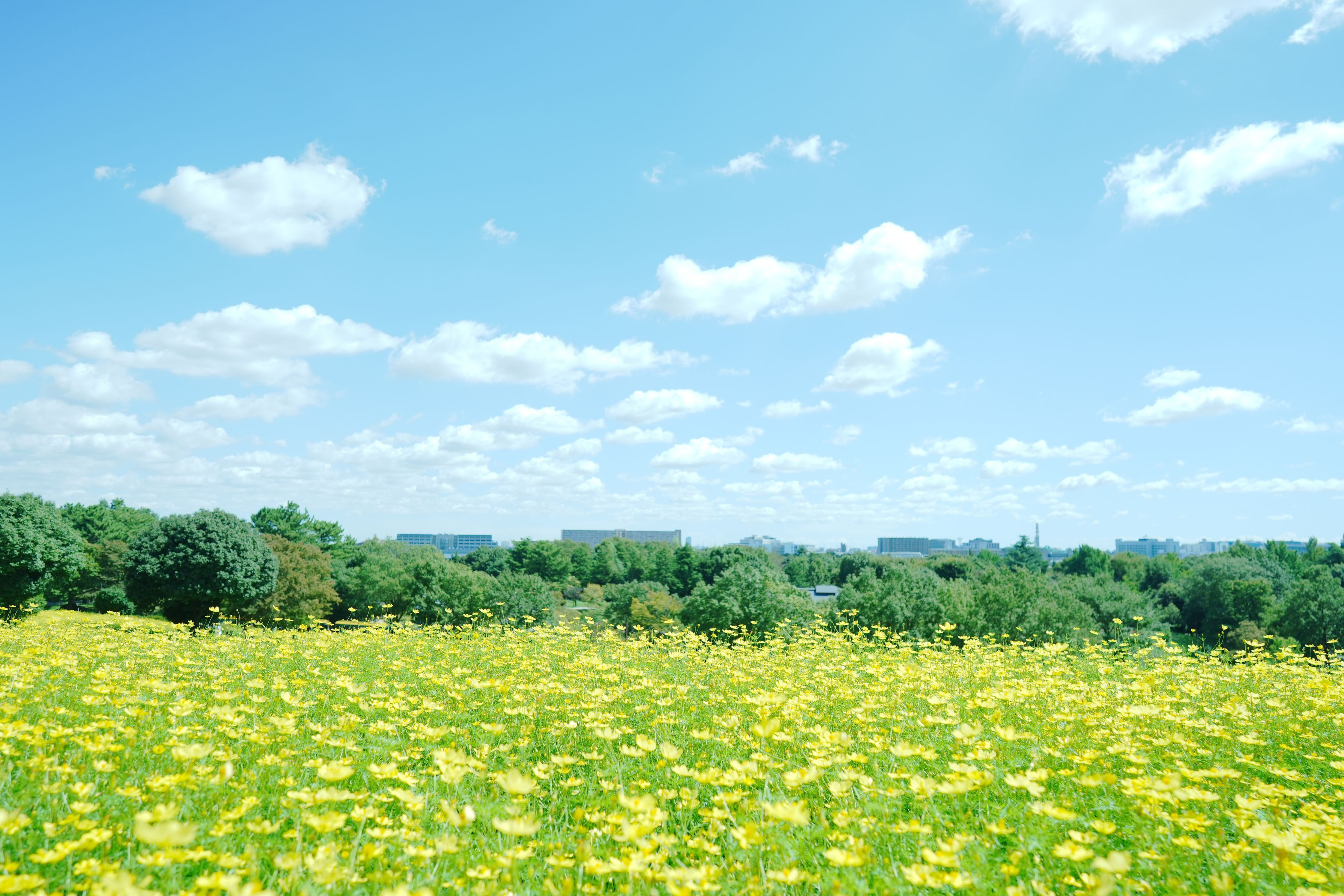 昭和記念公園のレモンブライトを見に行ってきました。 丘は見上げて撮ることが多いのですが、見下ろしたら雲もいい感じに出てたので上からも撮ってみました。