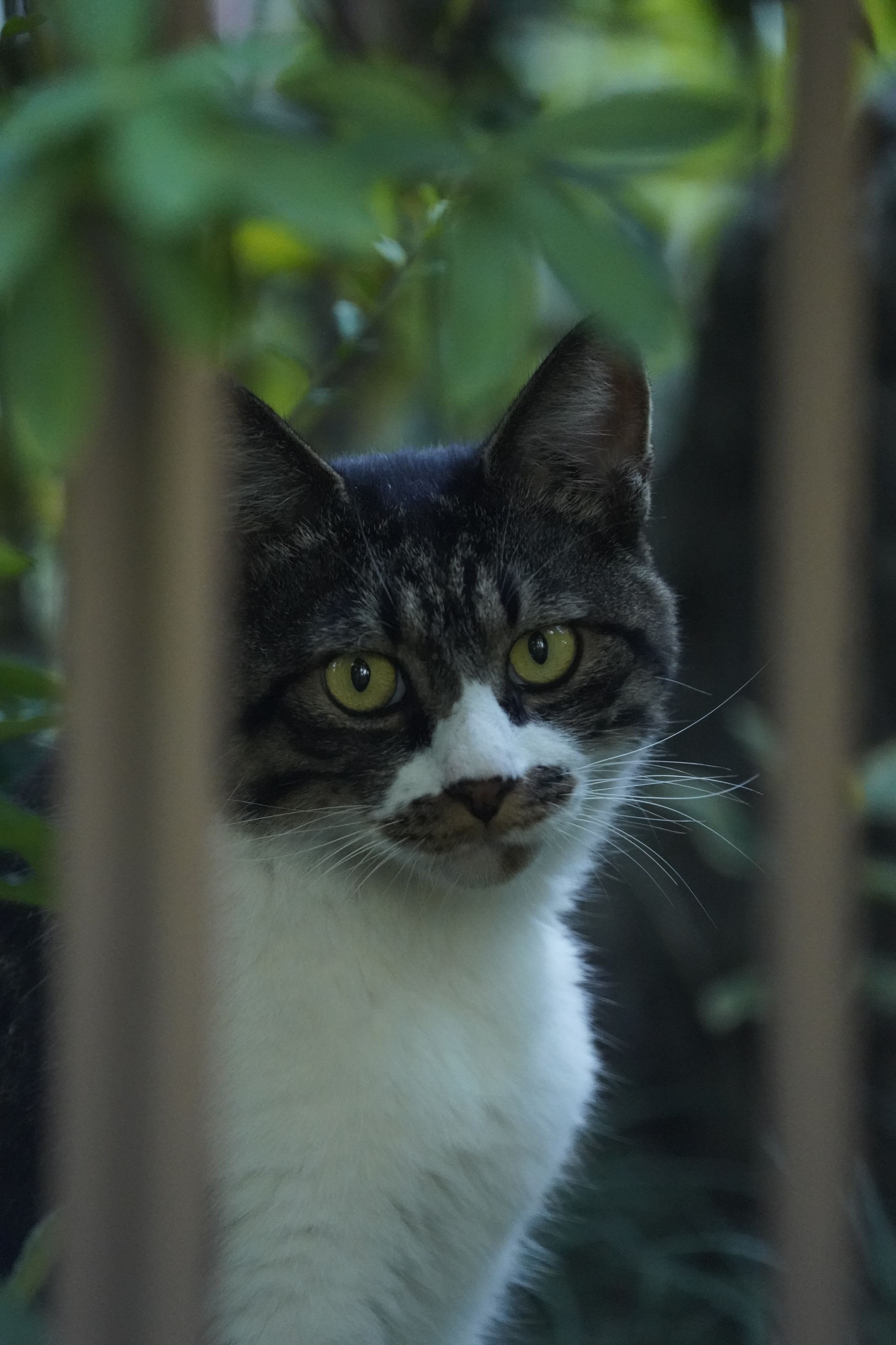 近所にいる自由なネコです。 いつもは犬の散歩中に合うので、あまり接近できないのですが、今日はたまたま一人。 「ねこーっ」と呼んだら立ち止まって写真を撮らせてくれました。