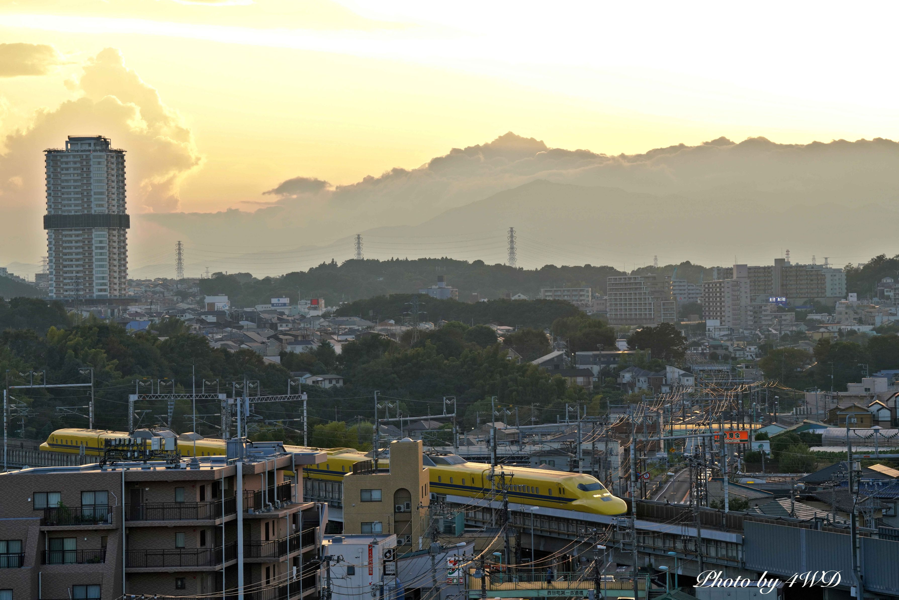 今まではこの時間はまだ明るく、上りのドクターイエローを簡単に撮影できましたが、本日は日没10分前の通過。しかし丹沢連山もあり雲もあって既に太陽は沈んでいます。
