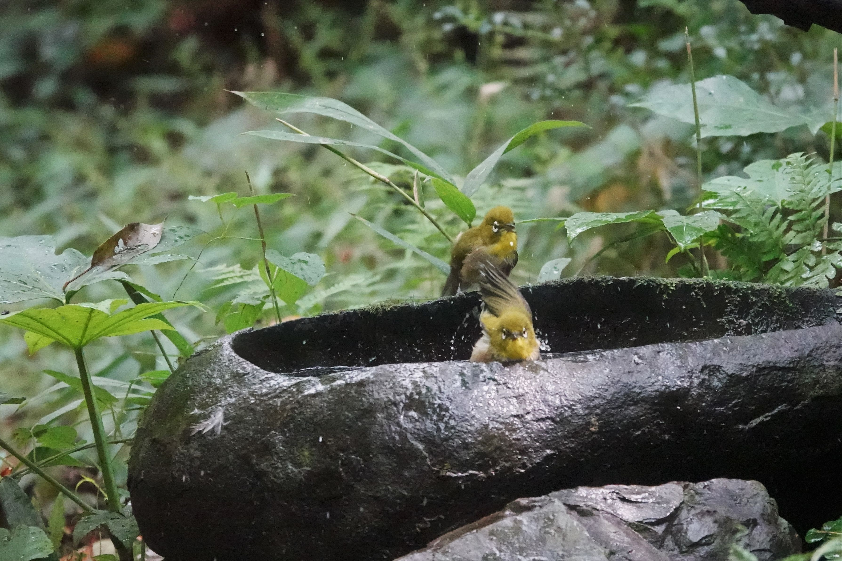 市内の公園で#メジロ#の水浴びを撮ってきました。