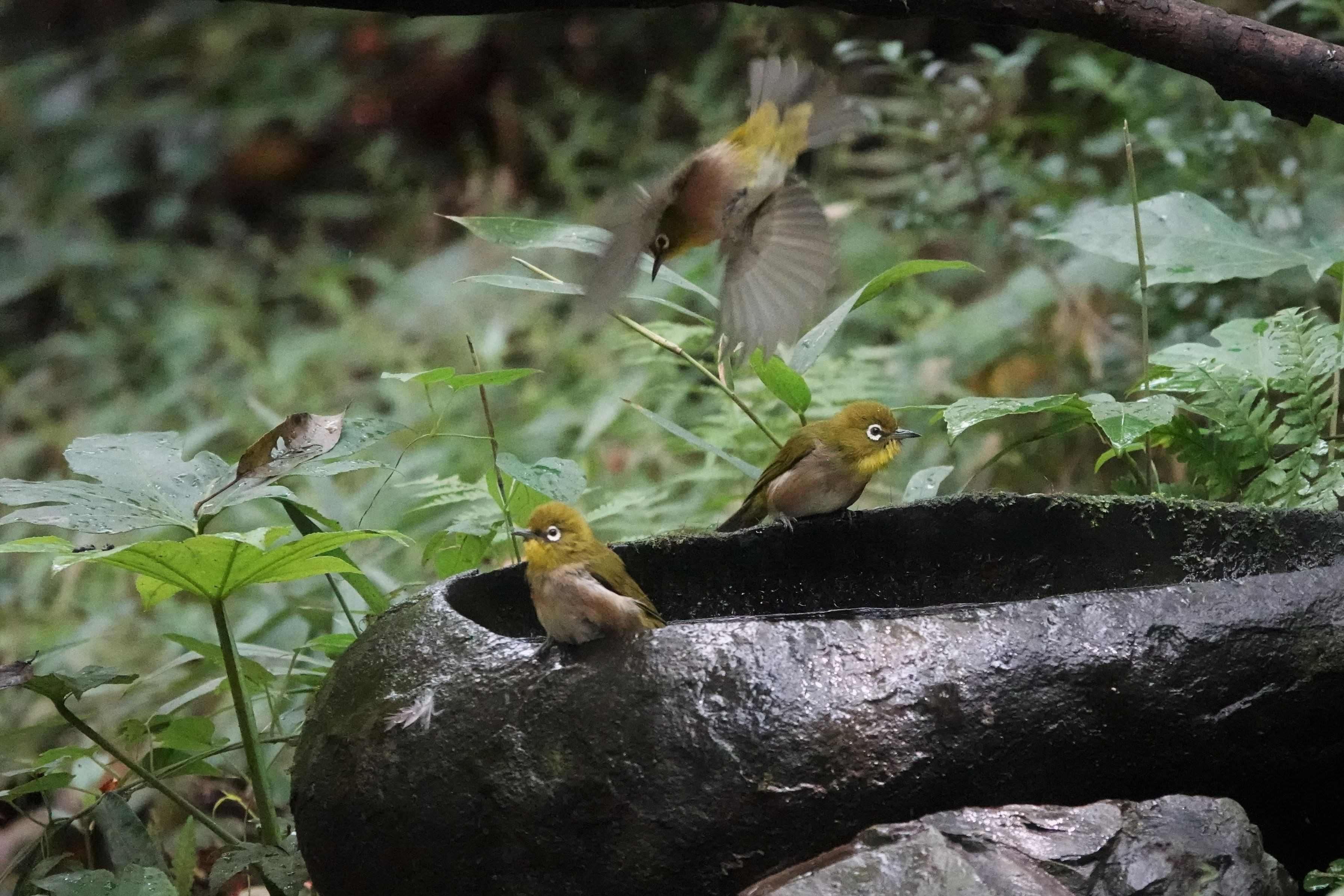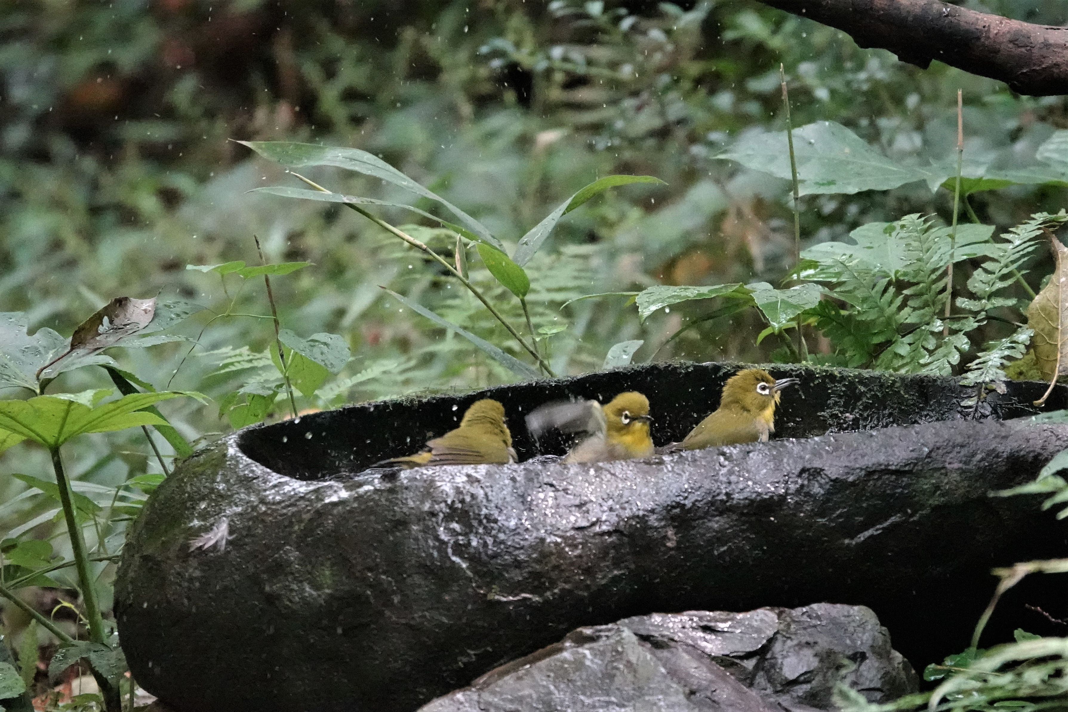 市内の公園で#メジロ#の水浴びを撮ってきました。