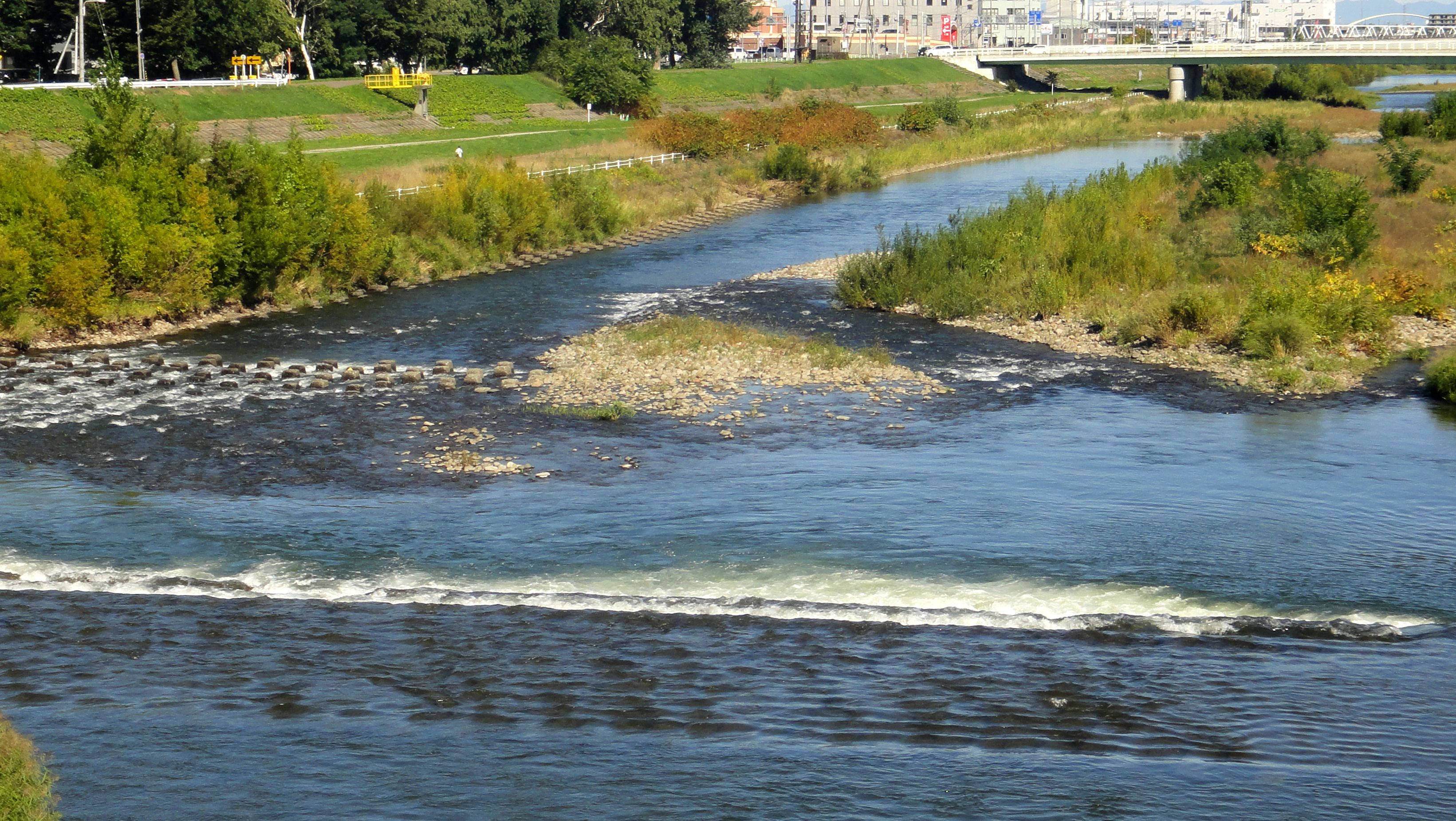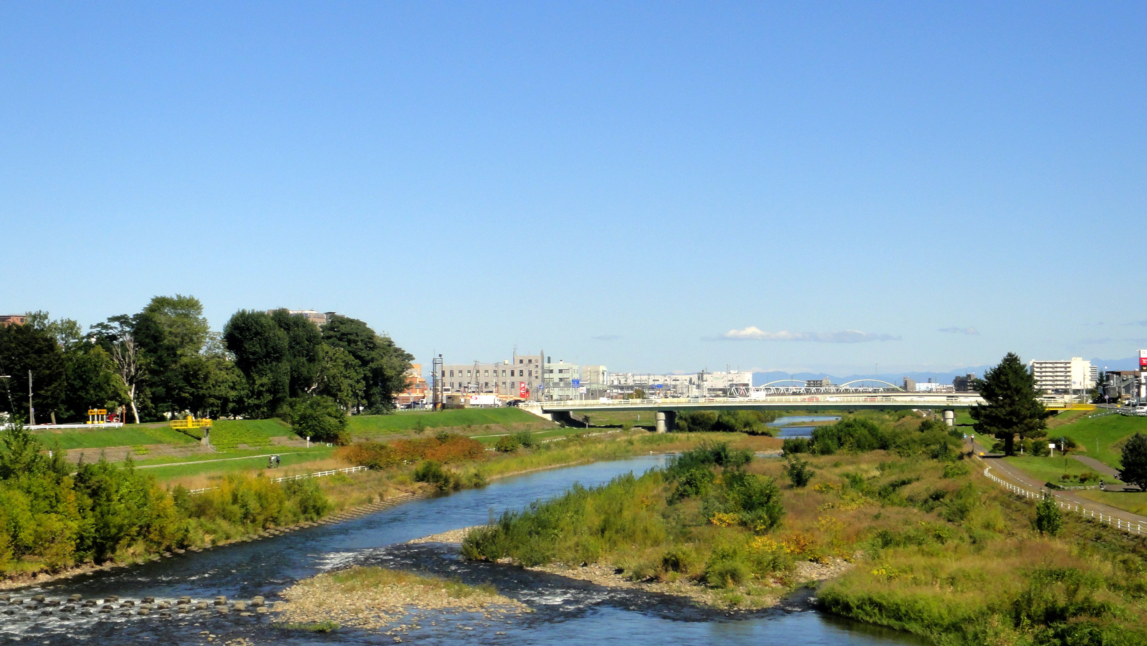 みずほ大橋の中央付近から豊平川下流を眺めて