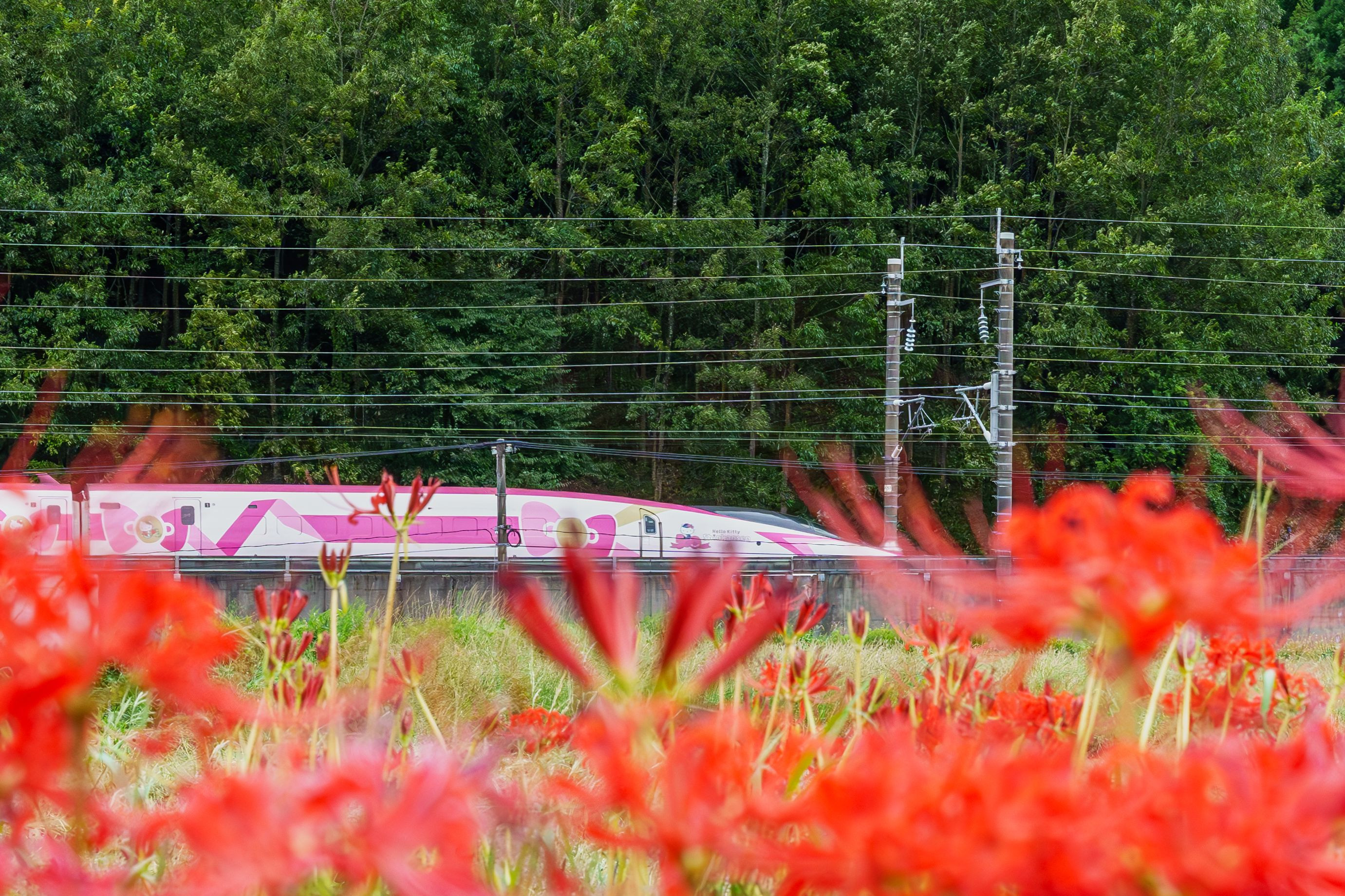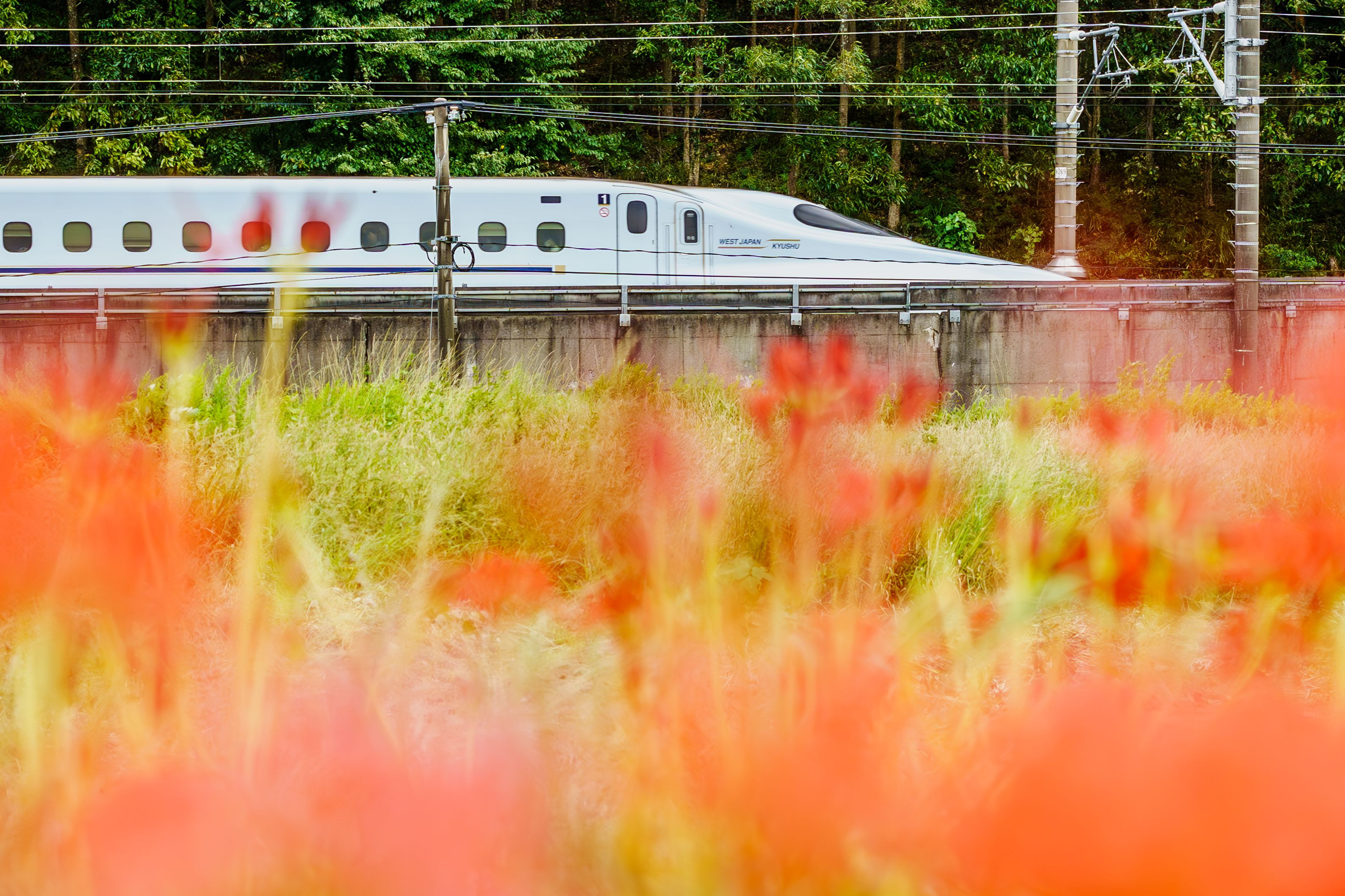 違う被写体を撮るつもりで出かけたのですが、横で新幹線が走っており、 近くの彼岸花と撮影しました。新幹線は、かなり速かったです。