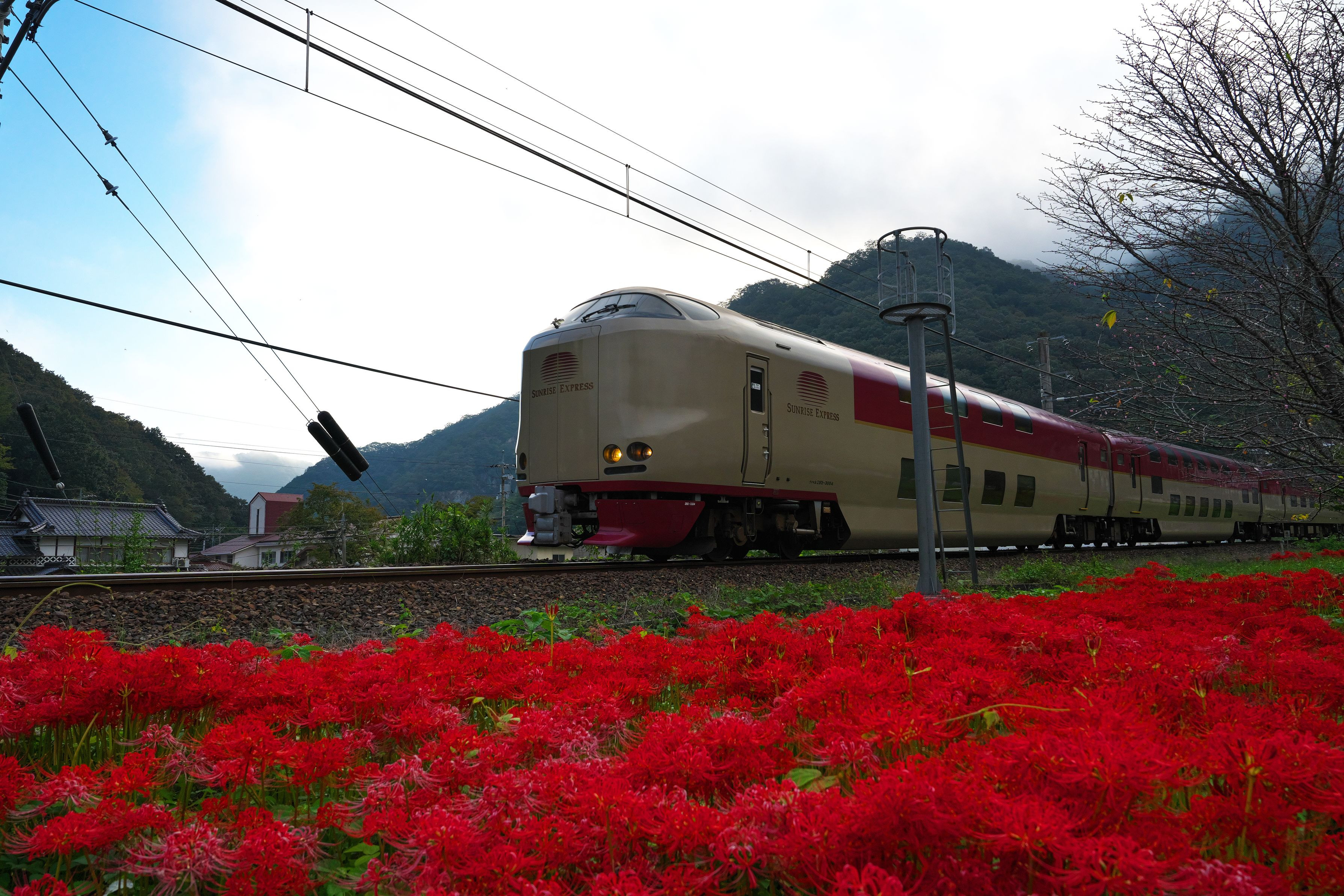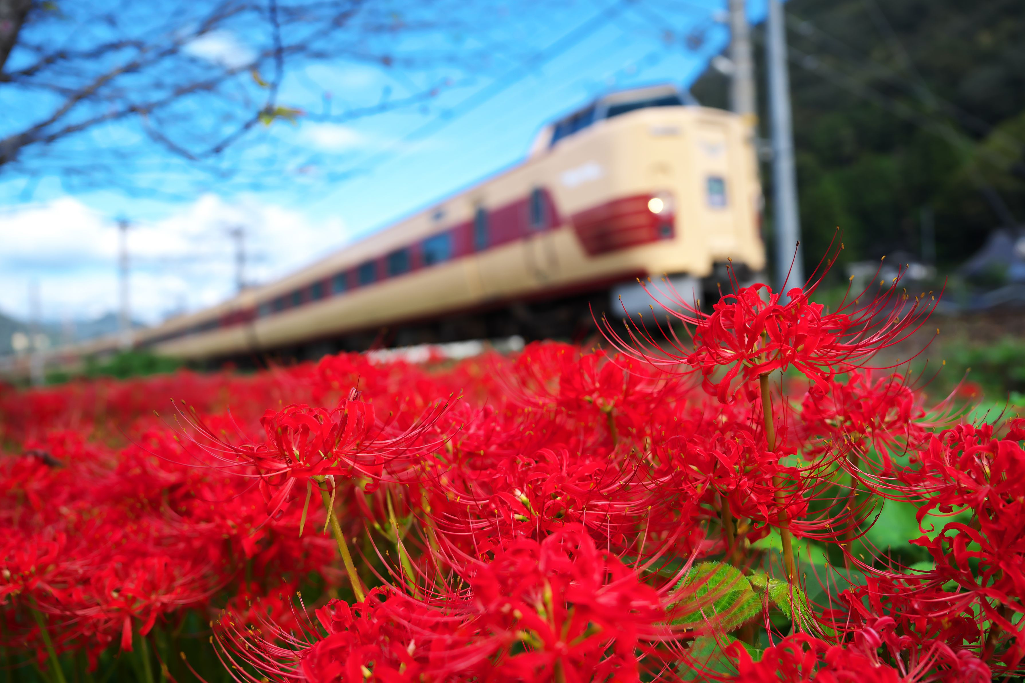 伯備線と彼岸花