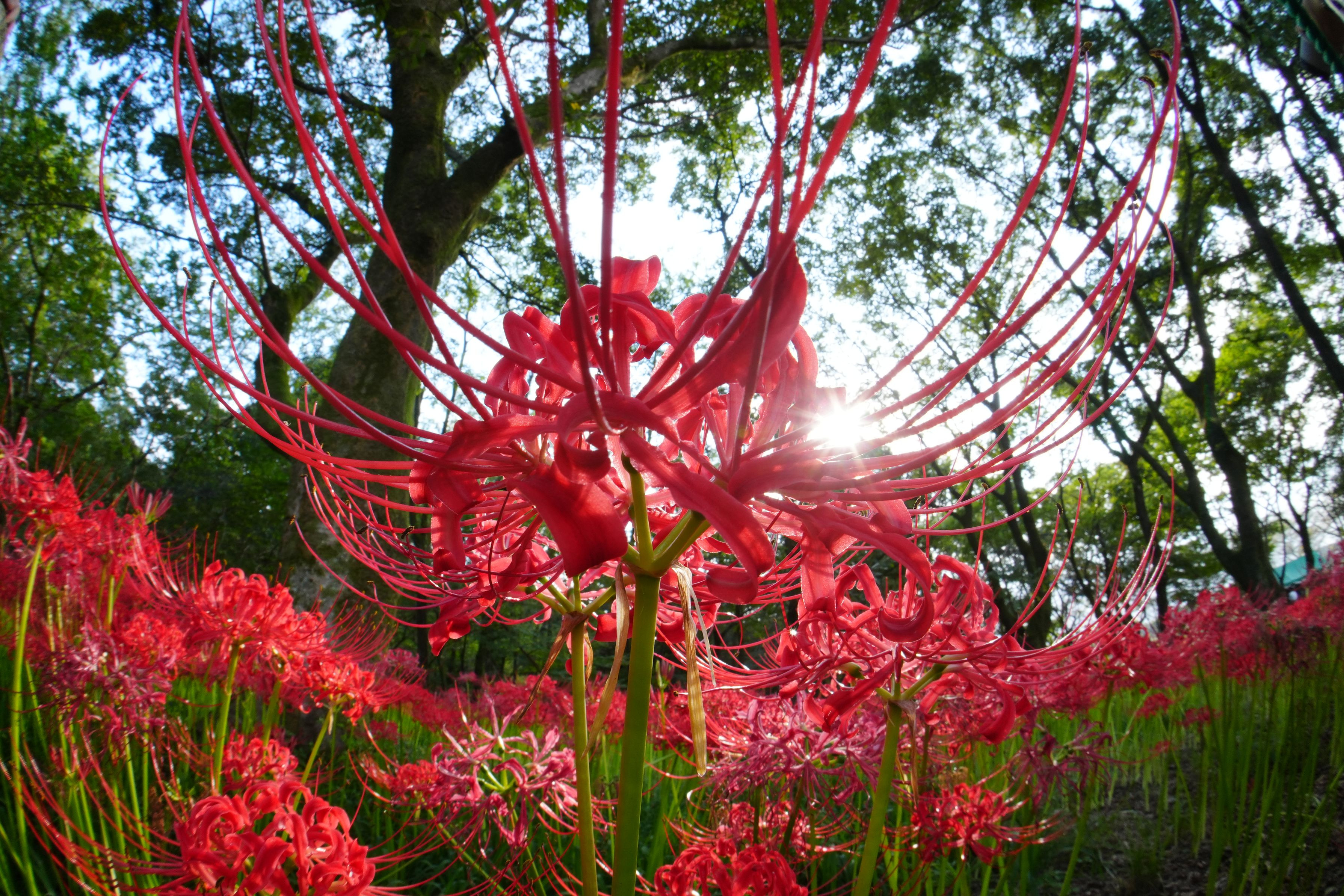 埼玉県日高市 巾着田 曼珠沙華公園にて SEL16F28+VCL-ECF1使用 ひとつ覚えの構図ですが、 同じような写真になると知りつつも、 場所や時間が違えば また撮りたくなるのが魚眼の世界