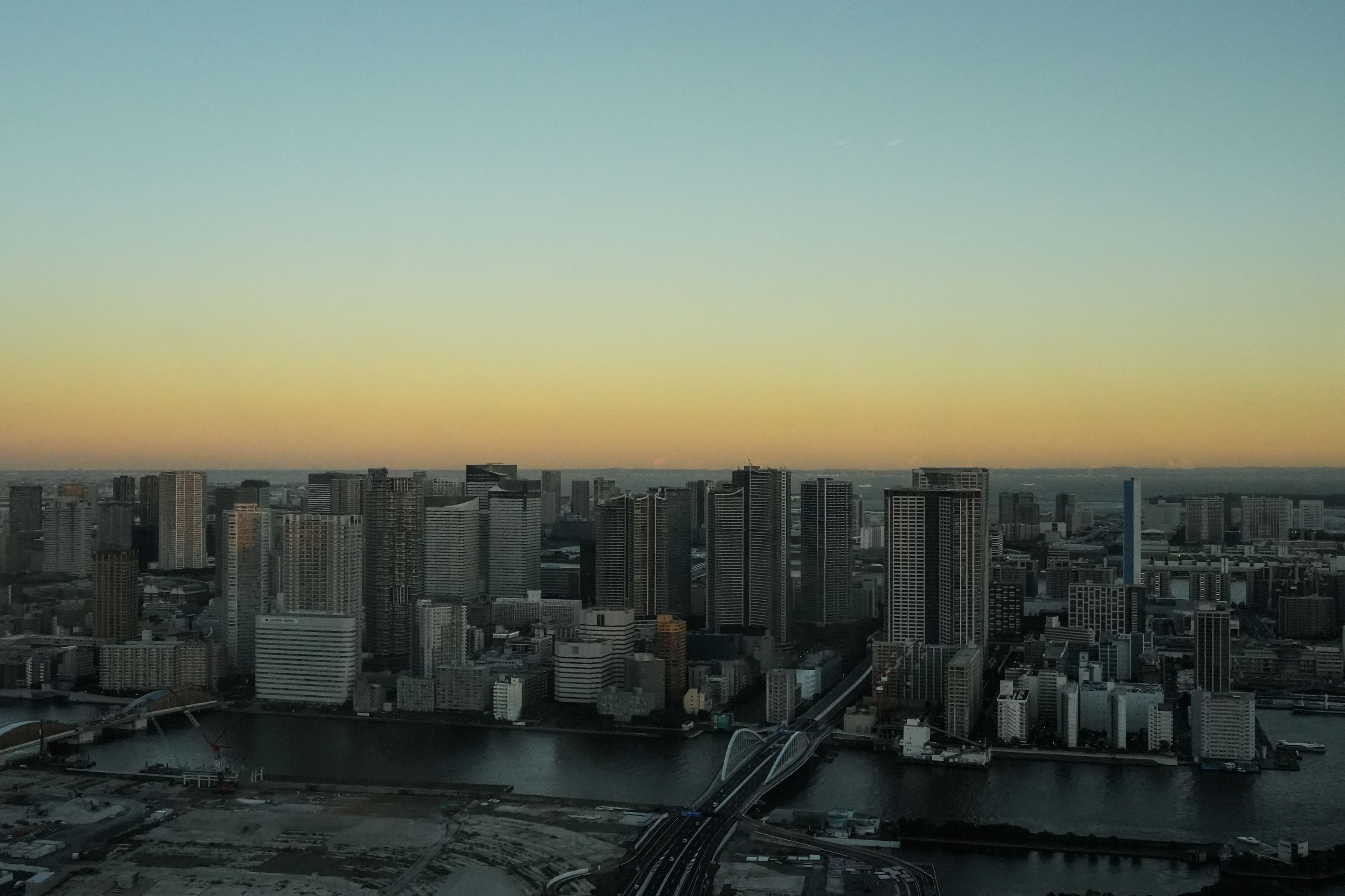 ビルと夕日の境界線が綺麗に一直線 #U35_photo#