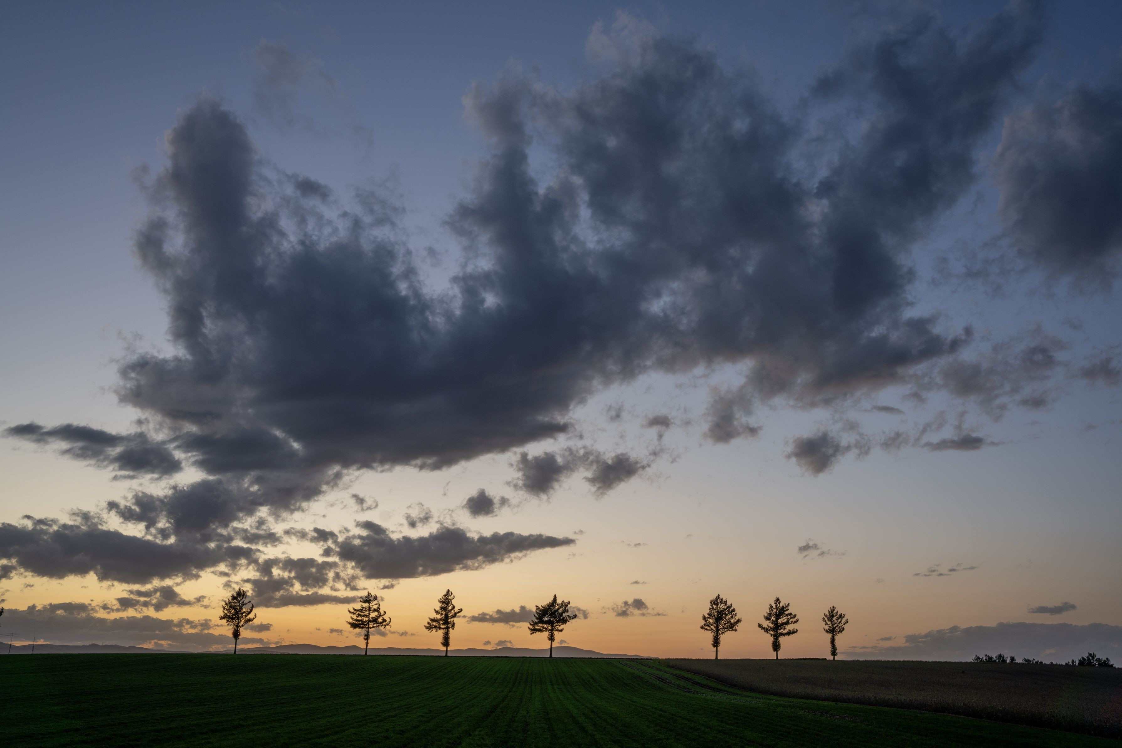 女満別に行くとつい立ち寄るメルヘンの丘。 この日は太陽にほとんど恵まれない日でしたが、最後の最後だけ夕焼け空になってくれました。