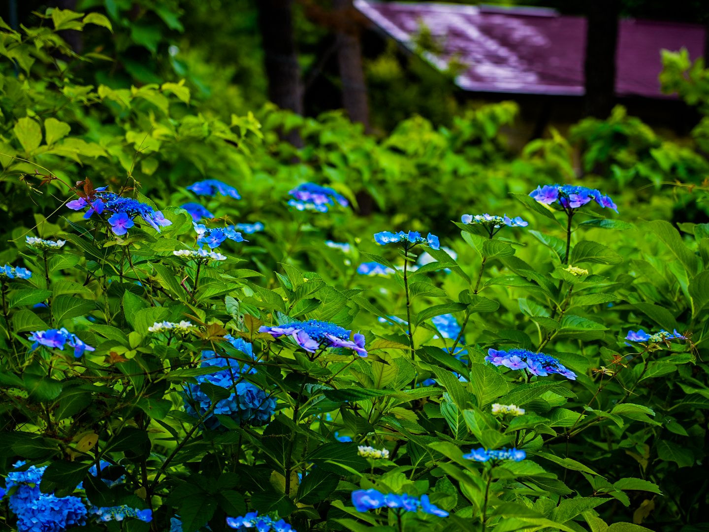 青い紫陽花の群生を撮ってみました。