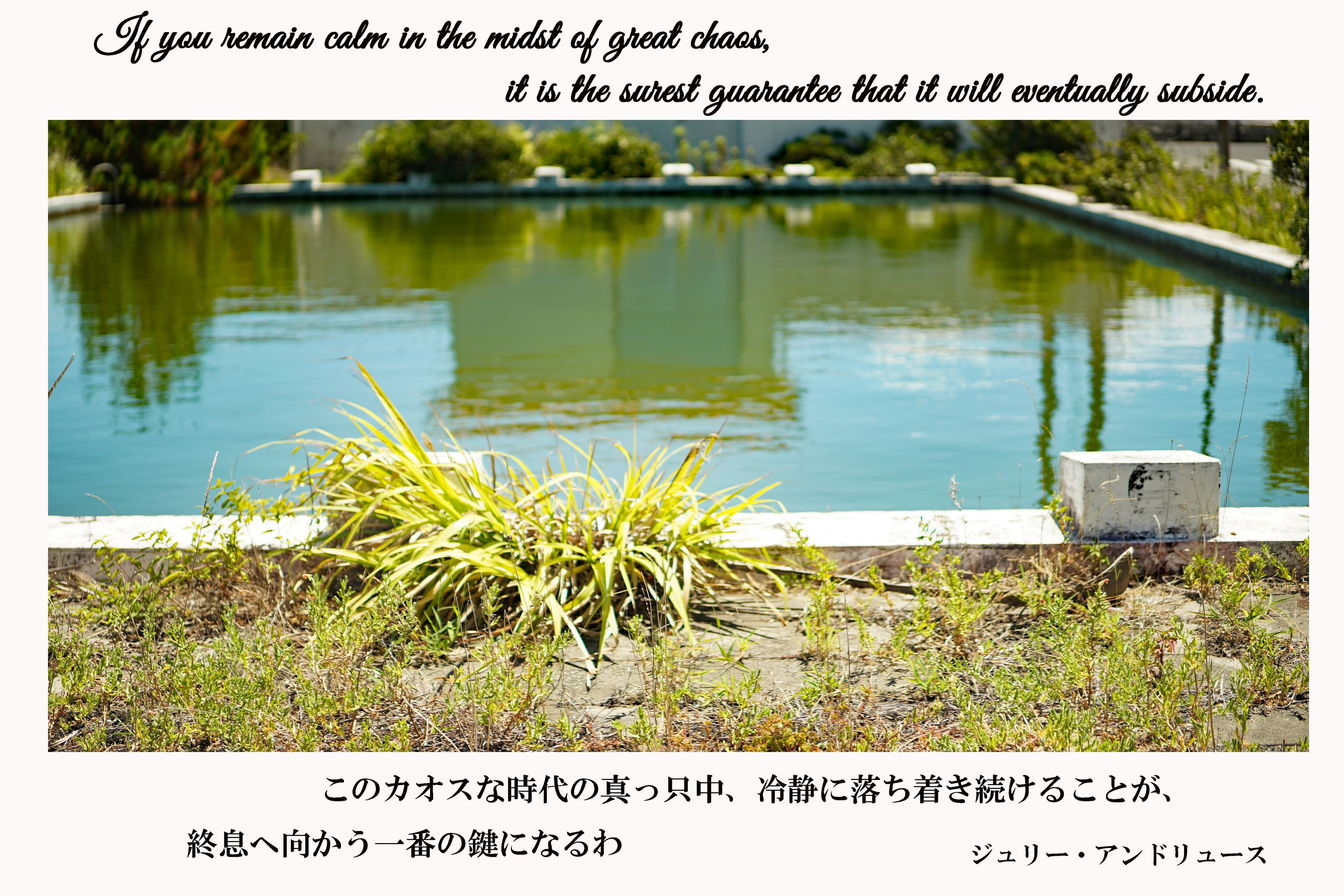 もう長い事使われていないプール。水は濁り、腐臭すらしてくる。「そんな混沌と沈黙」、残酷な時がなせる業。