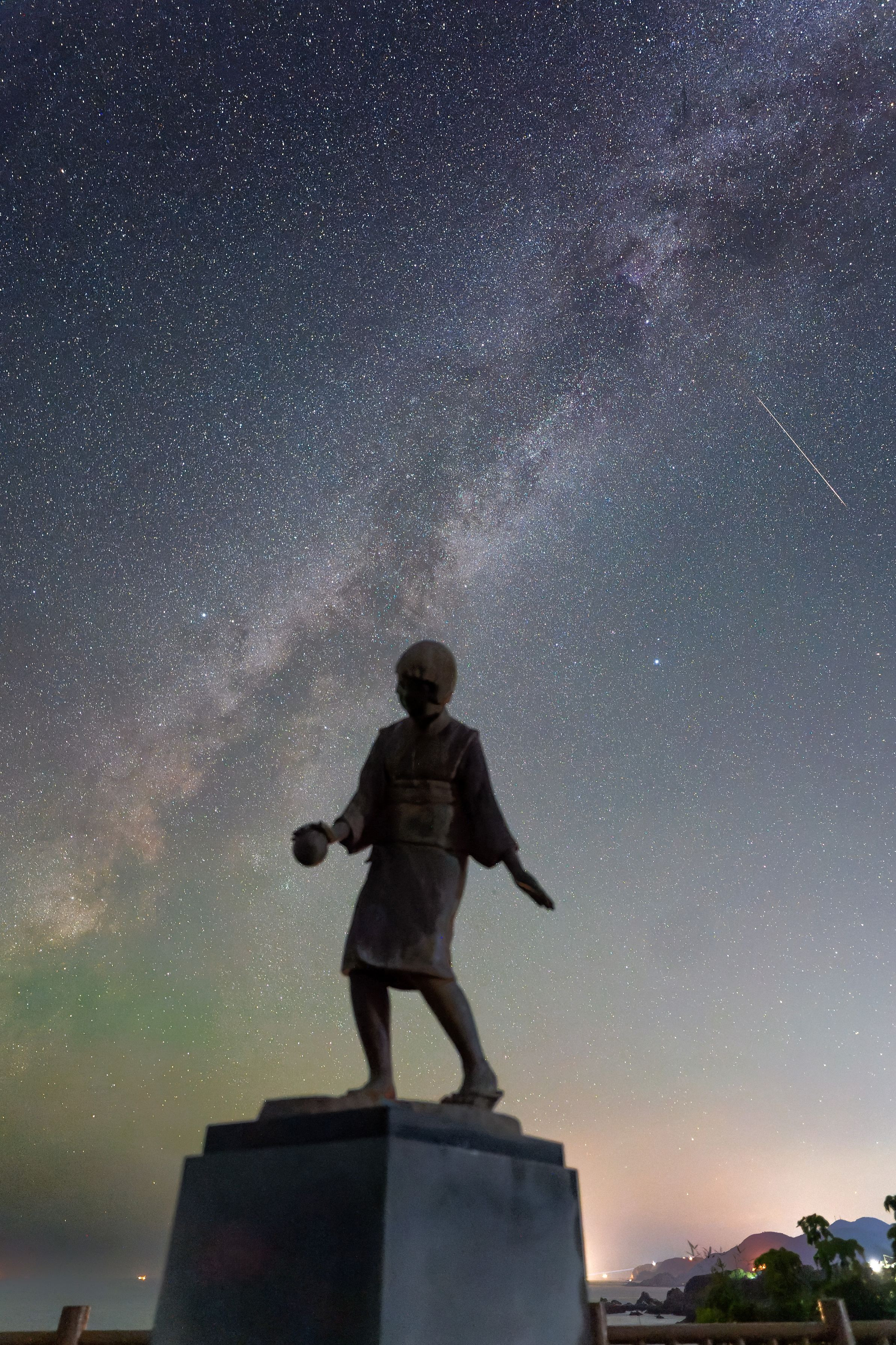 すっかり西に傾いた天の川、夏銀河ともお別れですね。 手毬少女に流れ星を添えて