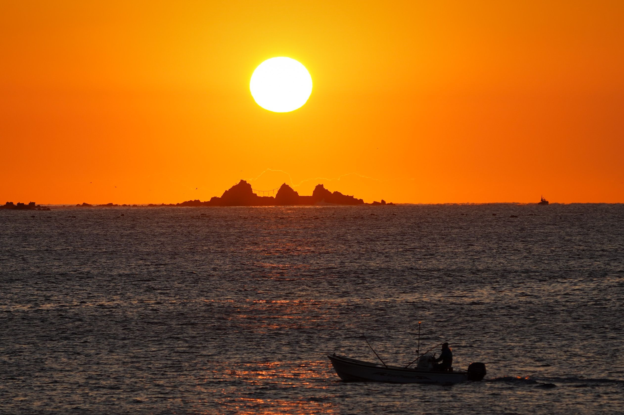 友人に誘われて行った湯河原。 偶然にも三ツ石の上に朝日が登ってくれました。