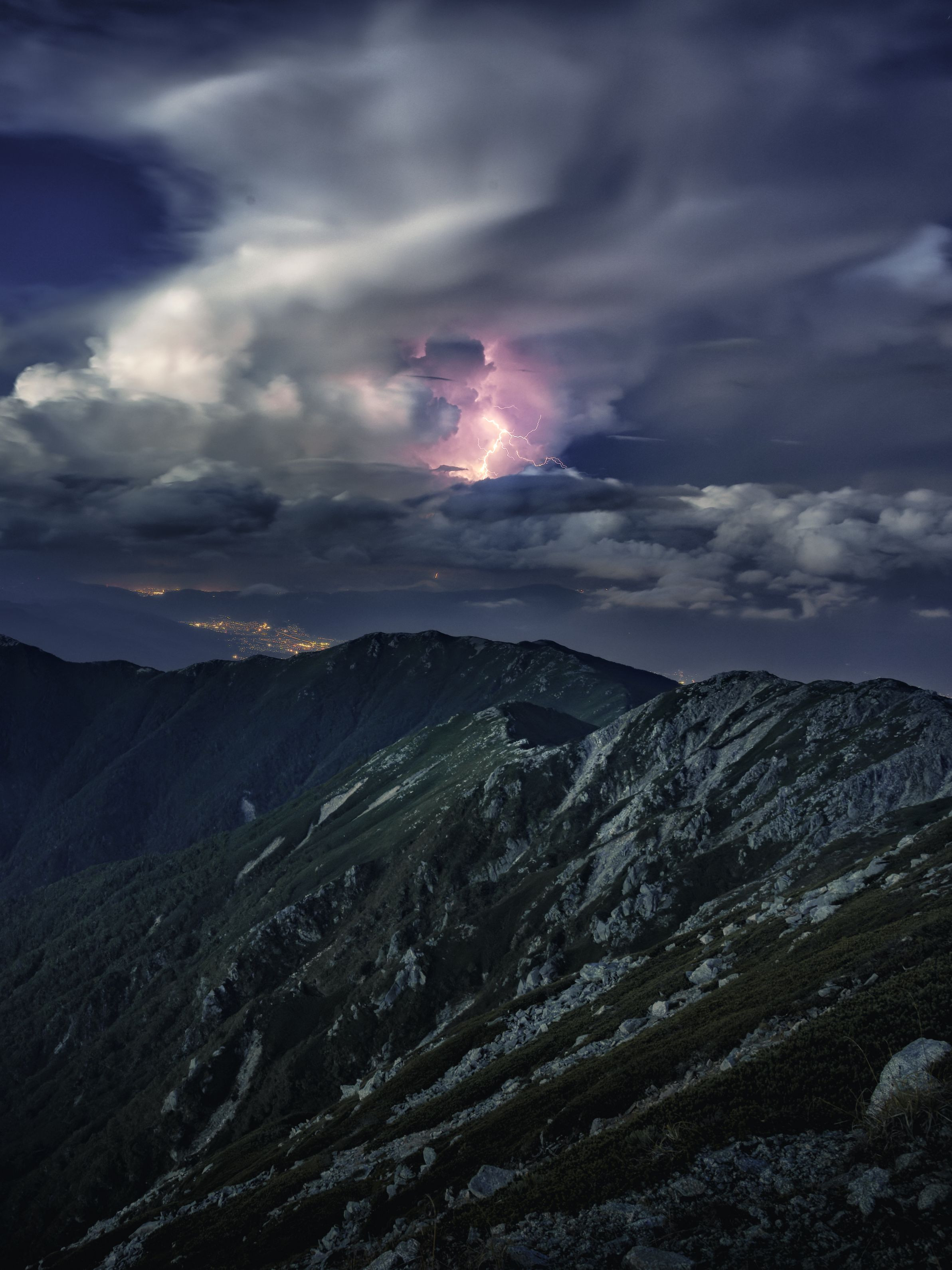 離れた位置に大きな雲があり、ピカピカと光る様子が見えていました。 インターバル撮影を使用して撮影を試みたところ運良くイナズマを捉えることができました。