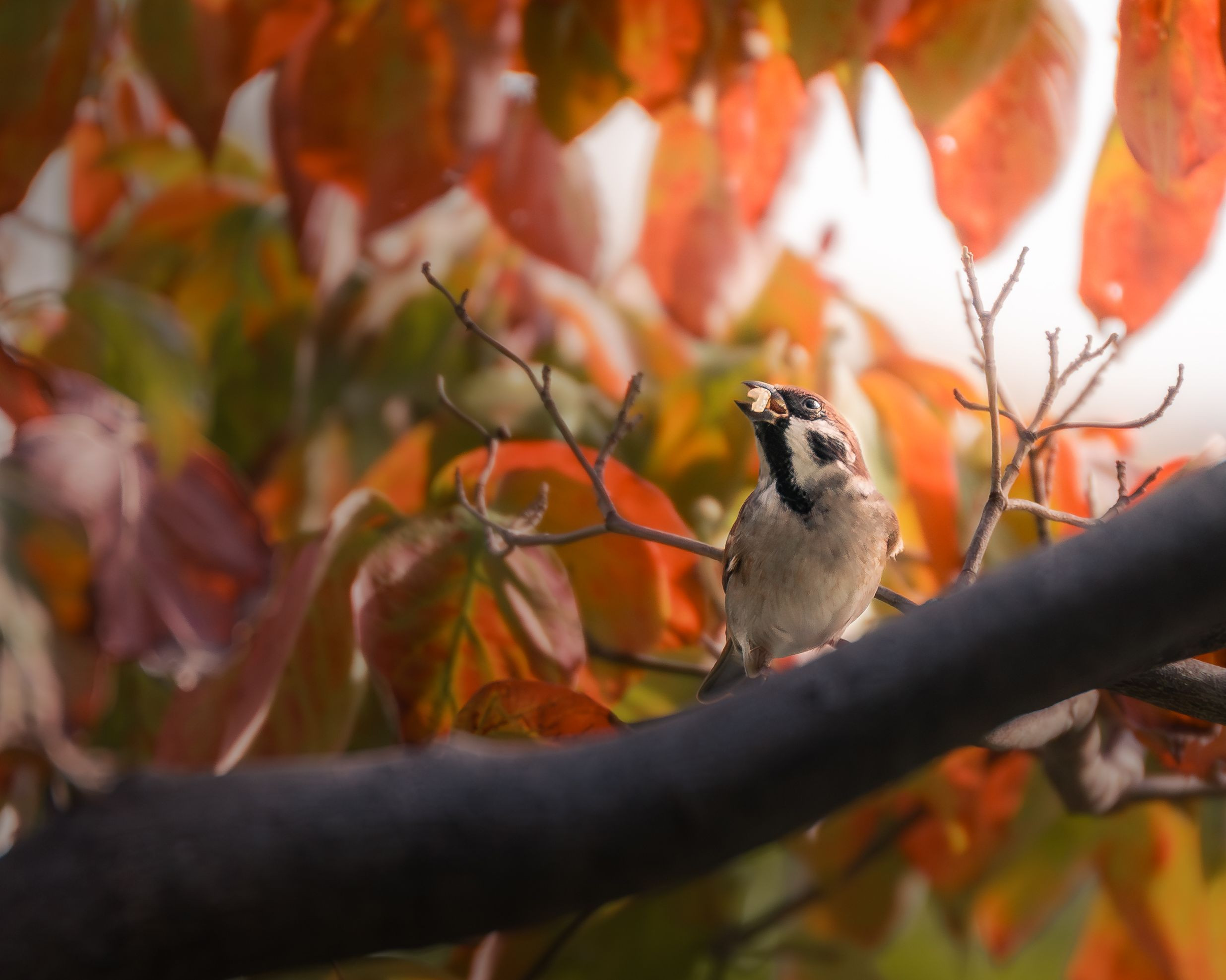 雀が餌を食べているところを撮影しました。