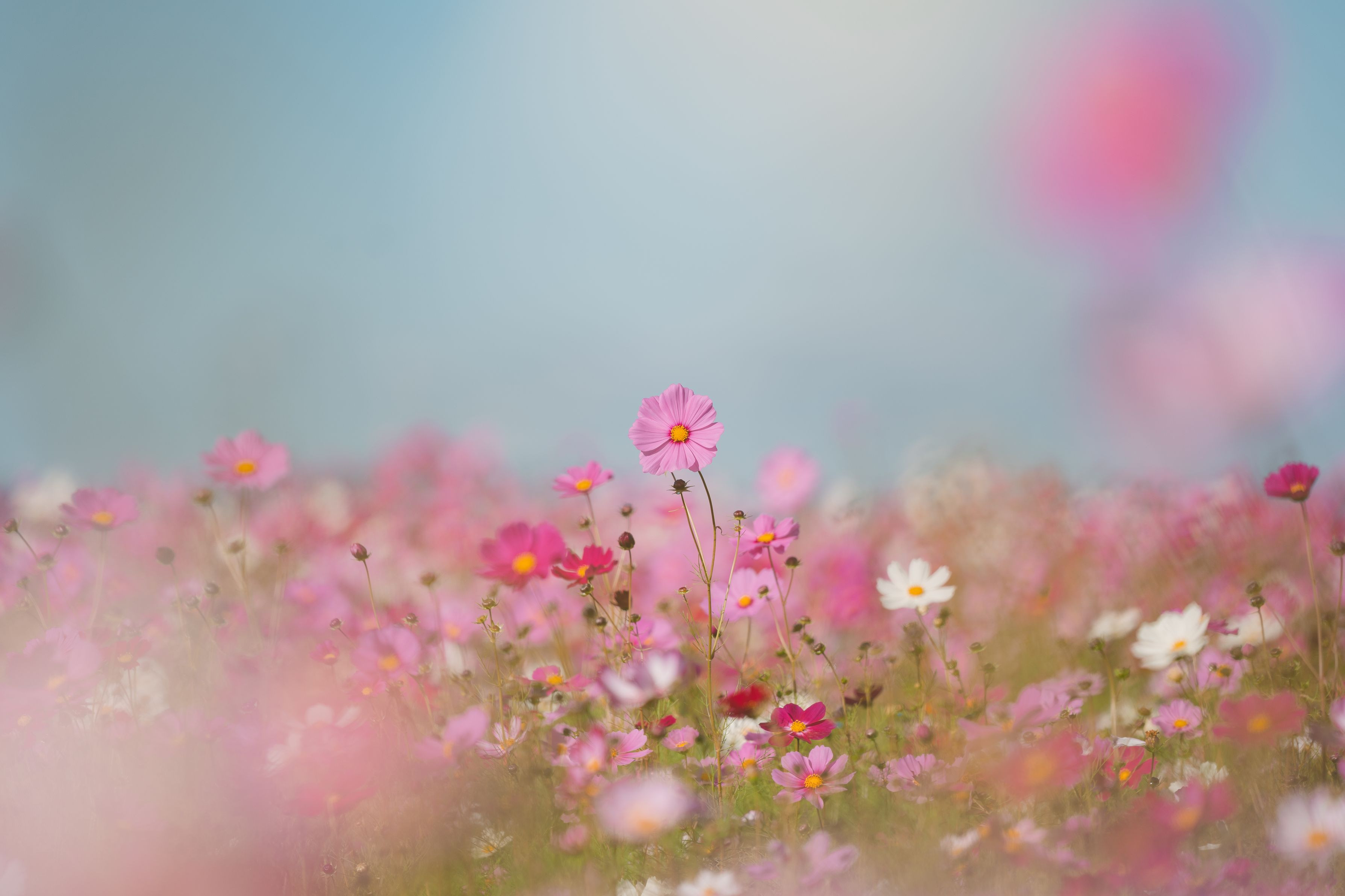 前ボケあり、太陽の方向を向いてくれて、かわいい。