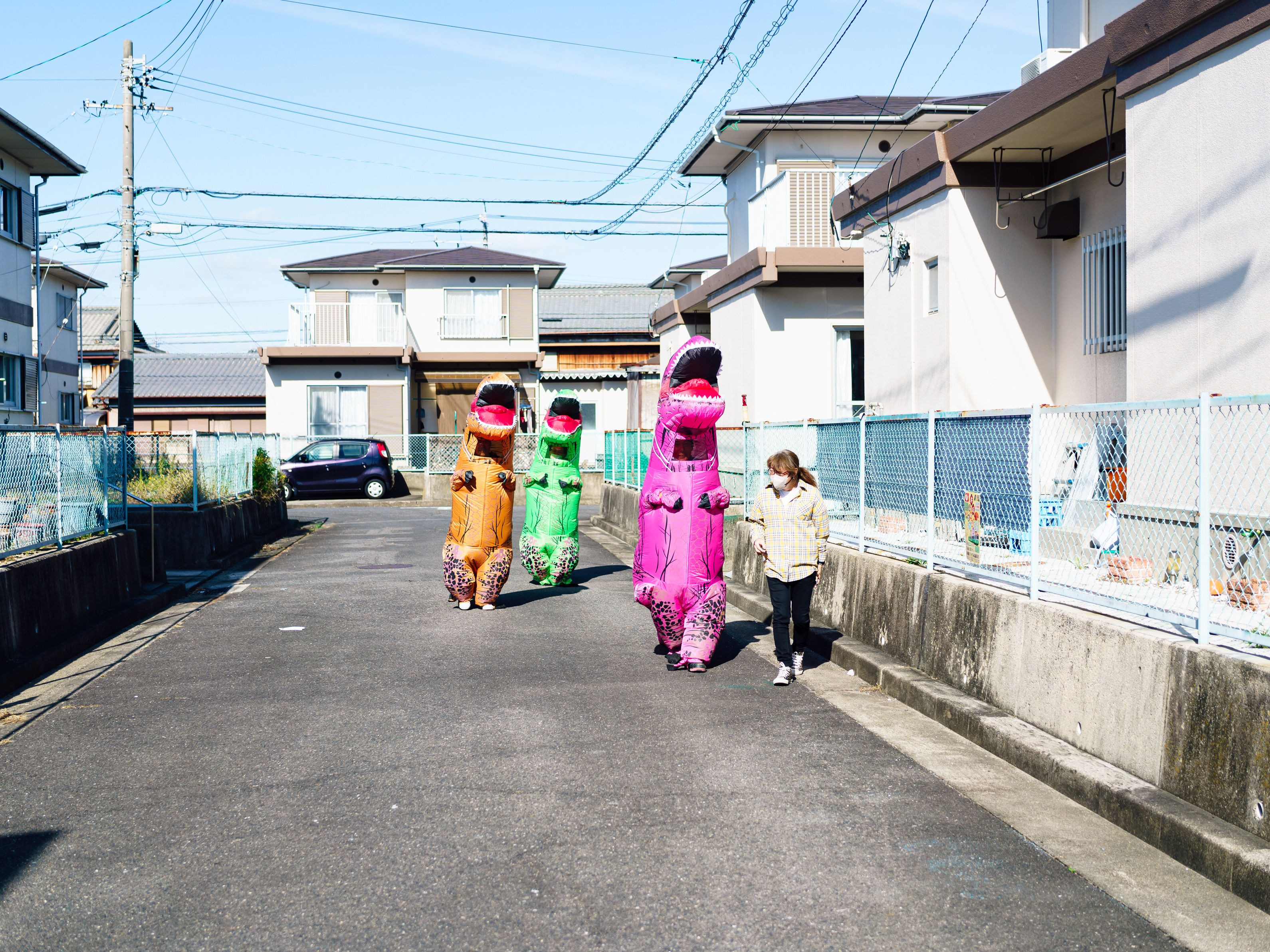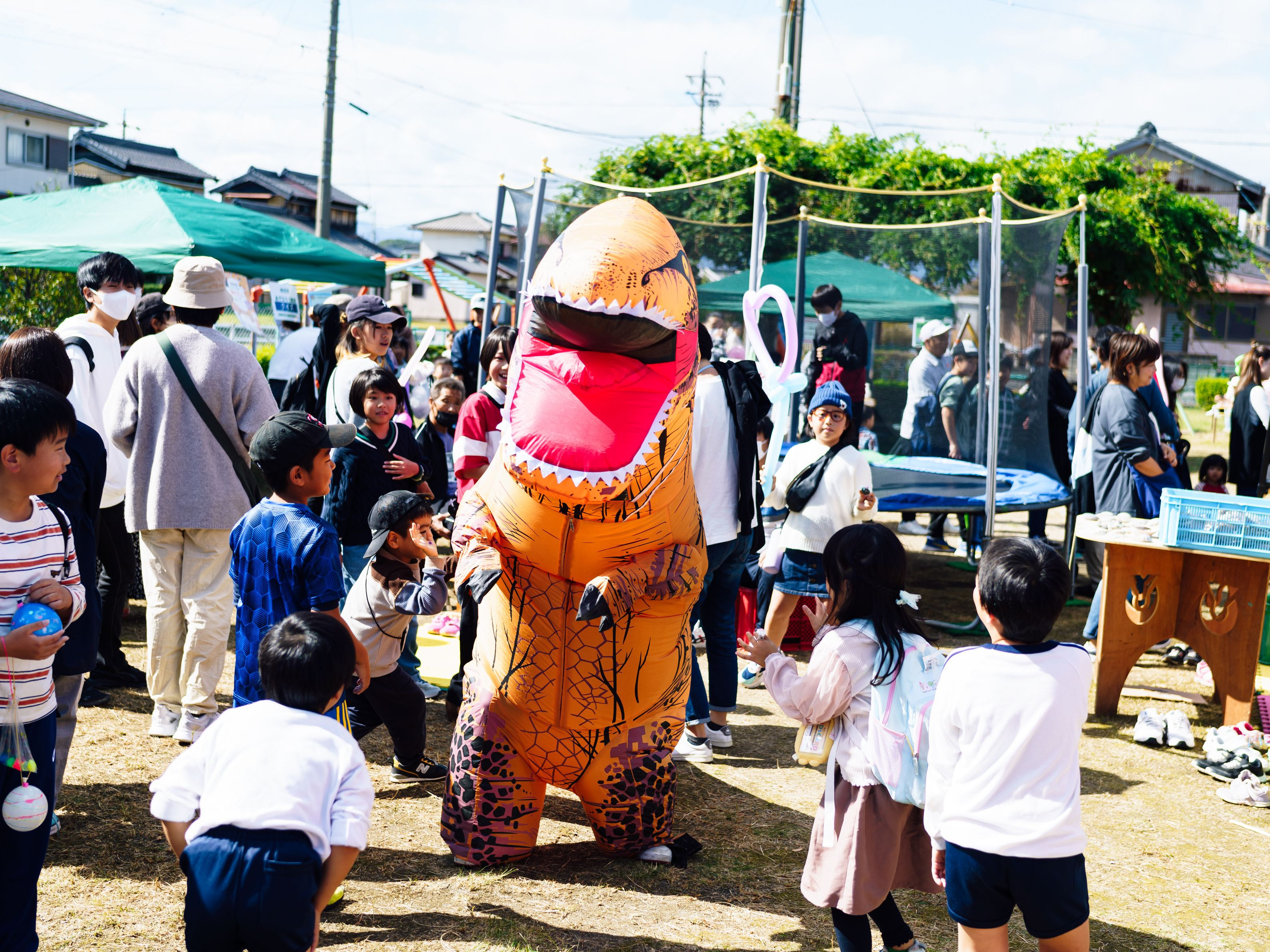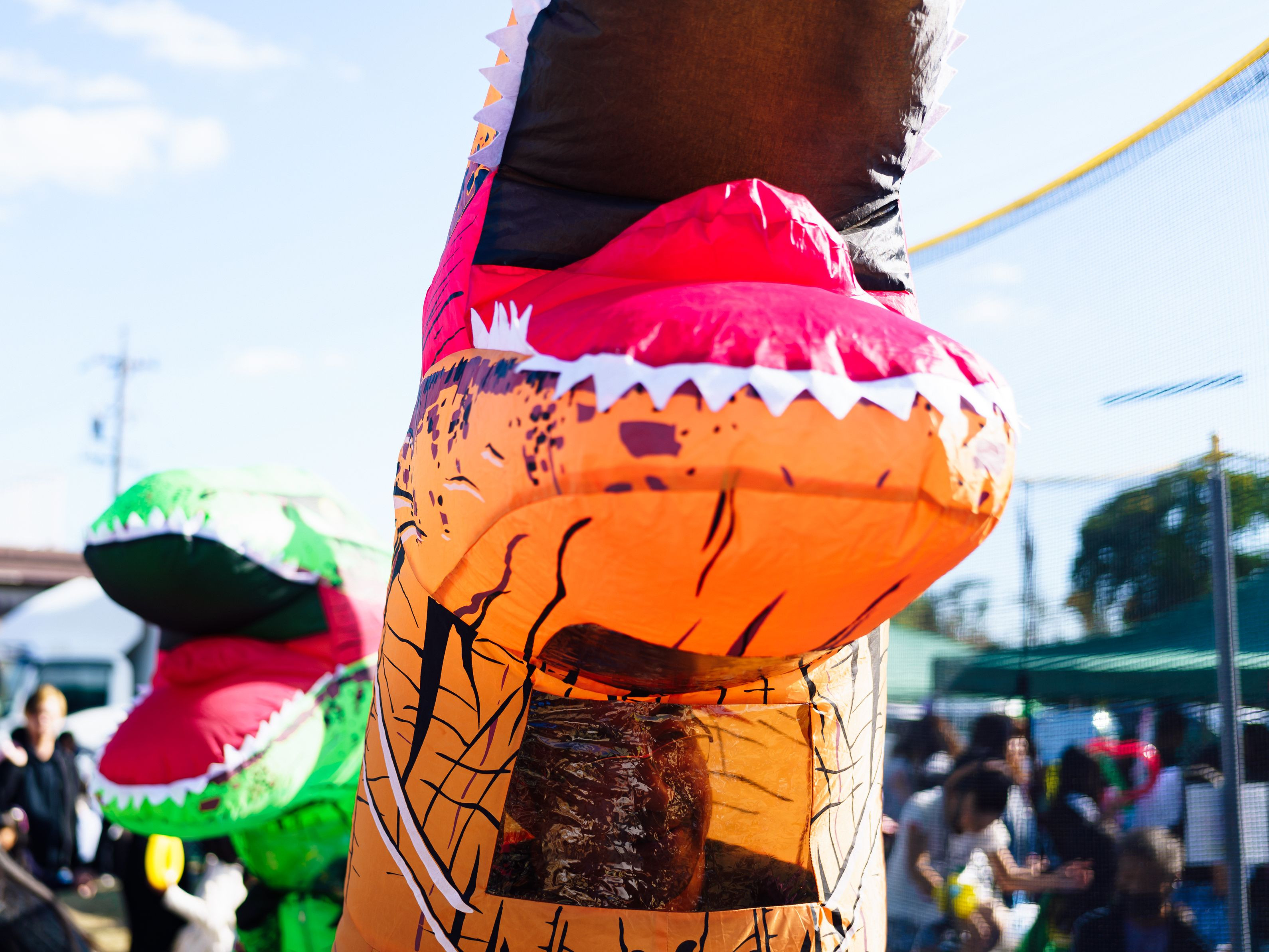 近所のお祭りで、賑やかしの恐竜乱入 偶然、出撃の瞬間を目撃してしまいました 大盛り上がりで中の人もご満悦