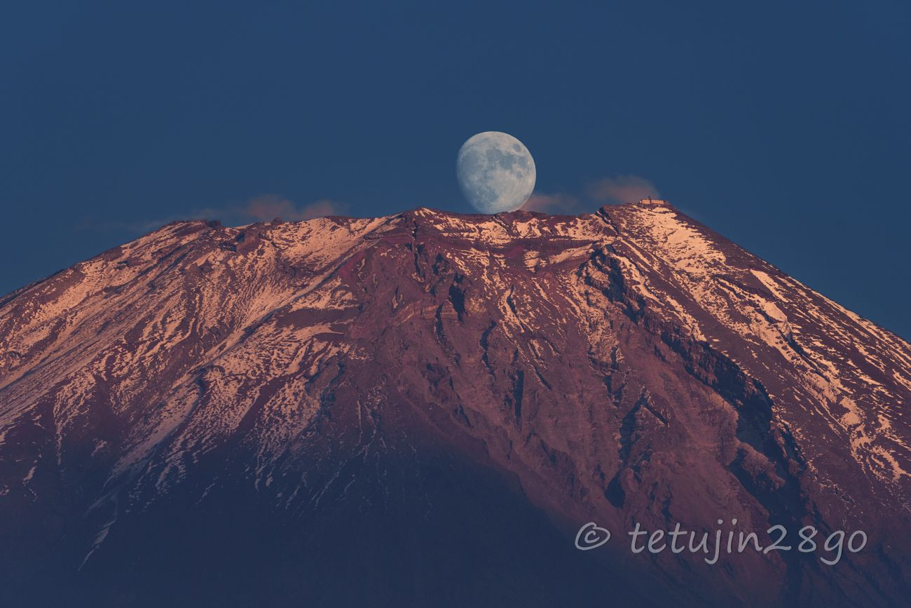 秋色富士と月_
