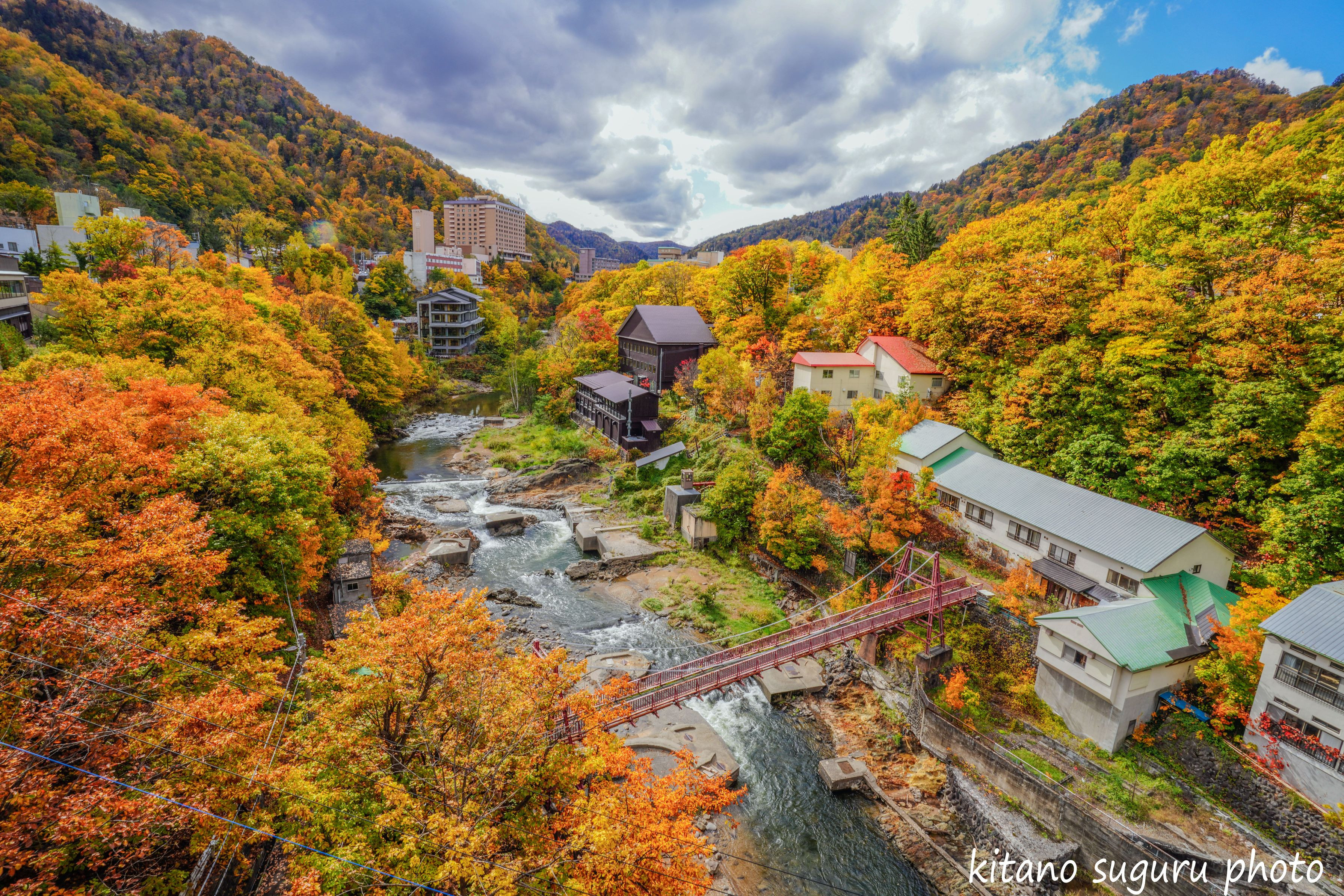 定山渓温泉郷の紅葉