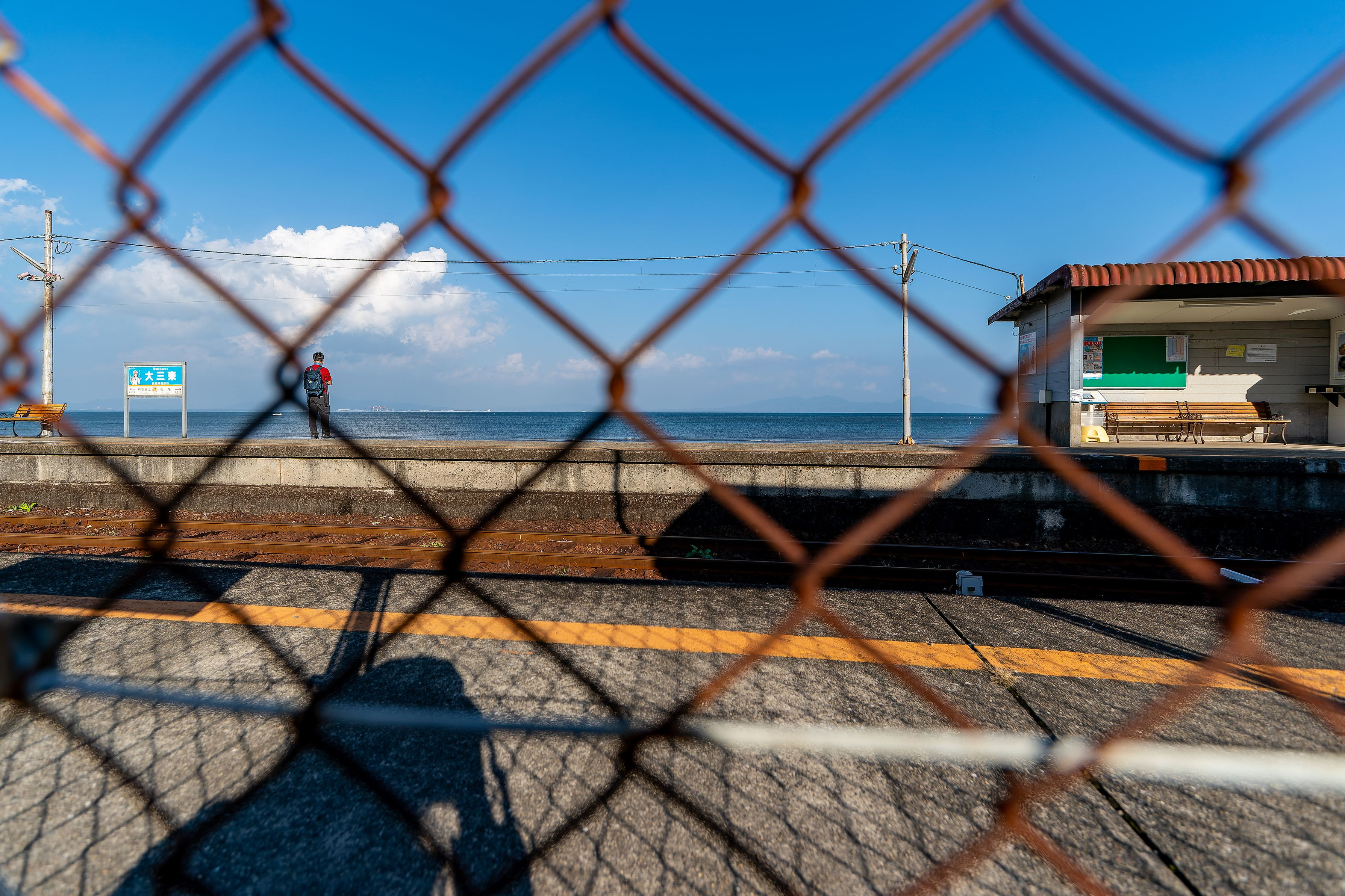おまけに干潮で島原鉄道、大三東駅の良い絵は撮れず