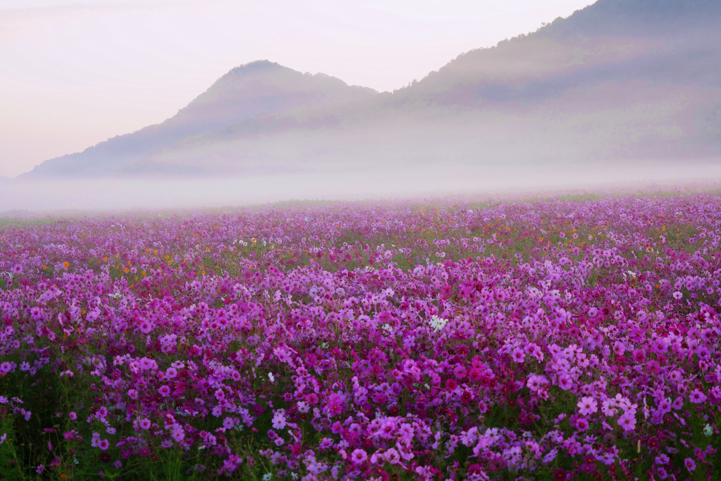 製品情報>My Sony>αcafe>朝霧の馬場コスモス畑(nobuflickrさん)
