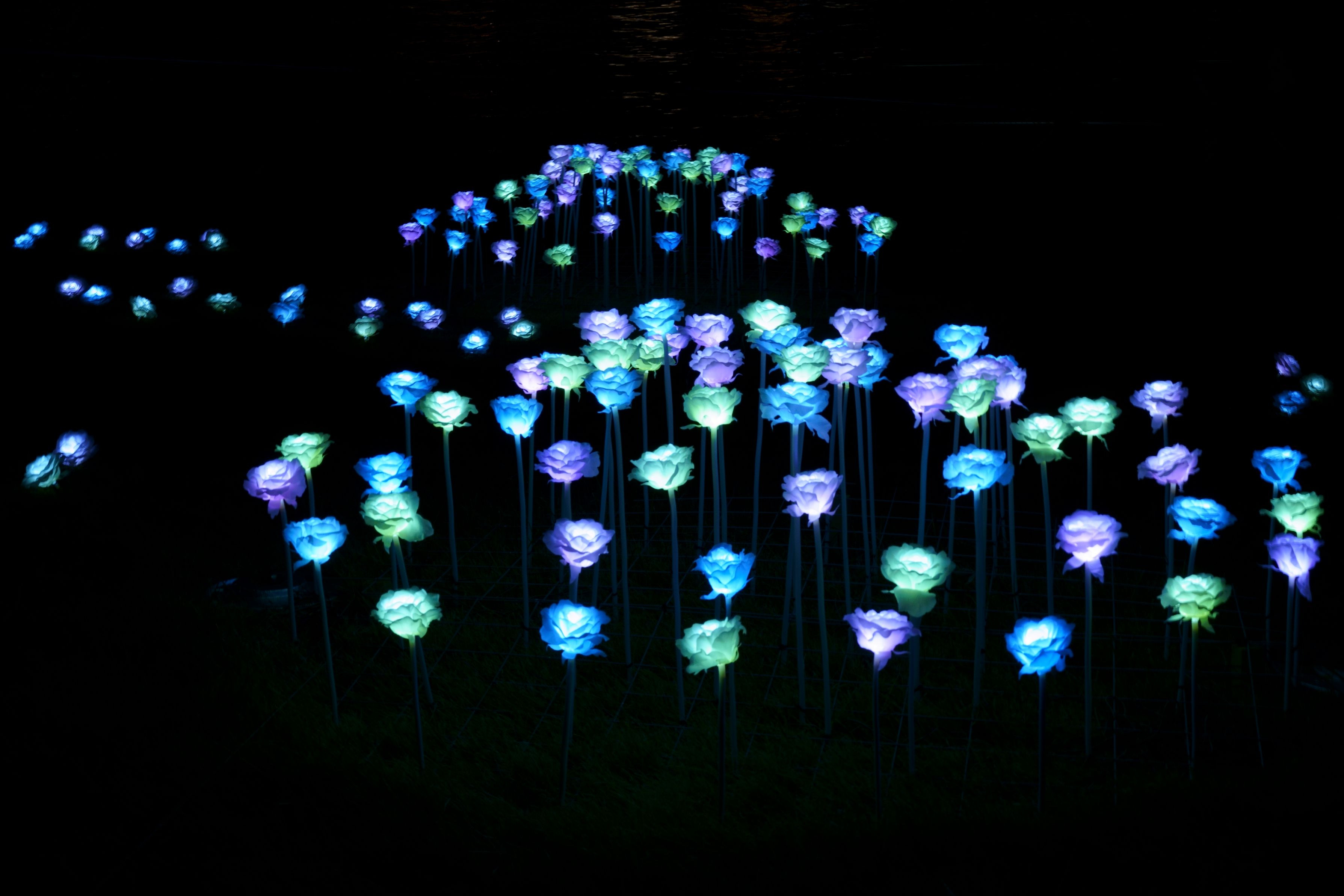 庭園内で夜散歩