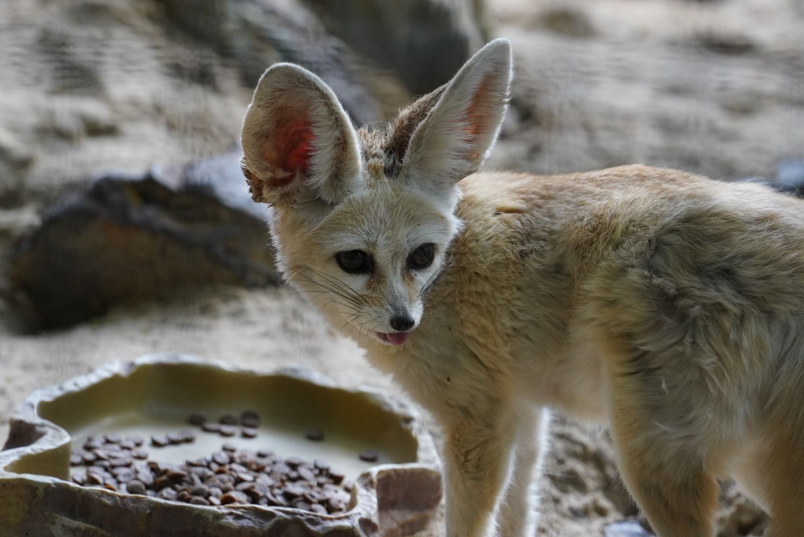 井の頭動物園のフェネック。 奇跡的に舌を出してくれて可愛い感じに。 柵が入ったのは悔しい。