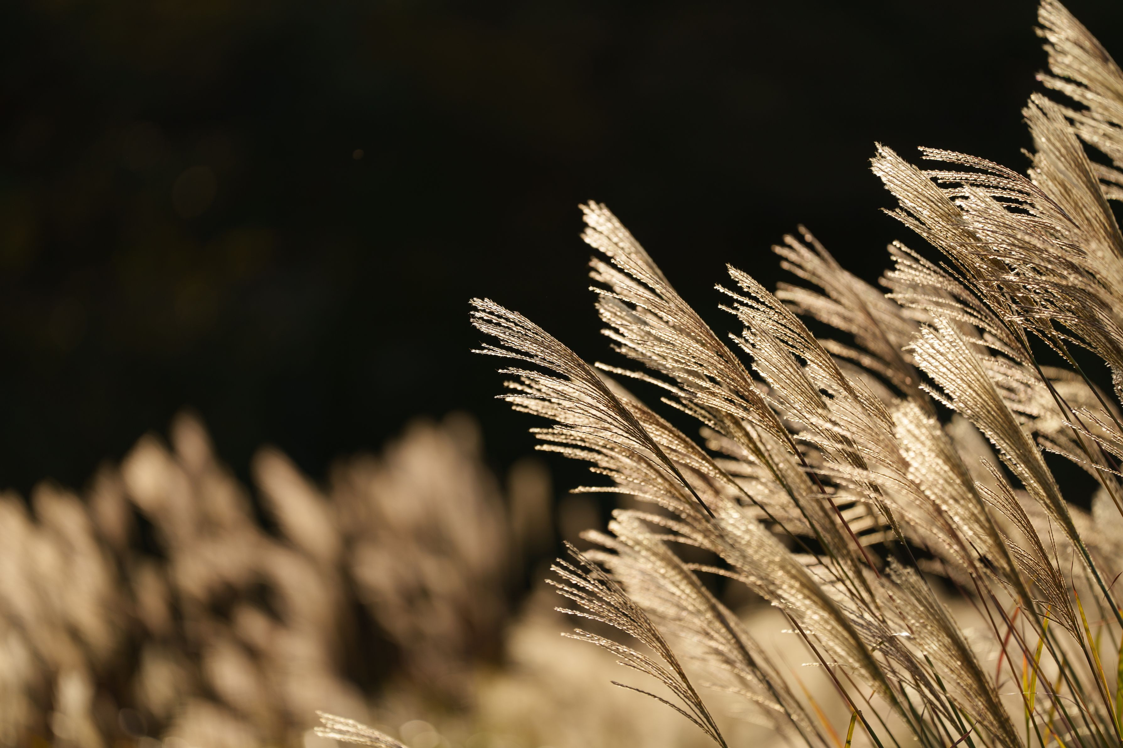 ひたち海浜公園へコキアを見に行きましたが、日に照らされて輝いているススキに目が奪われました。