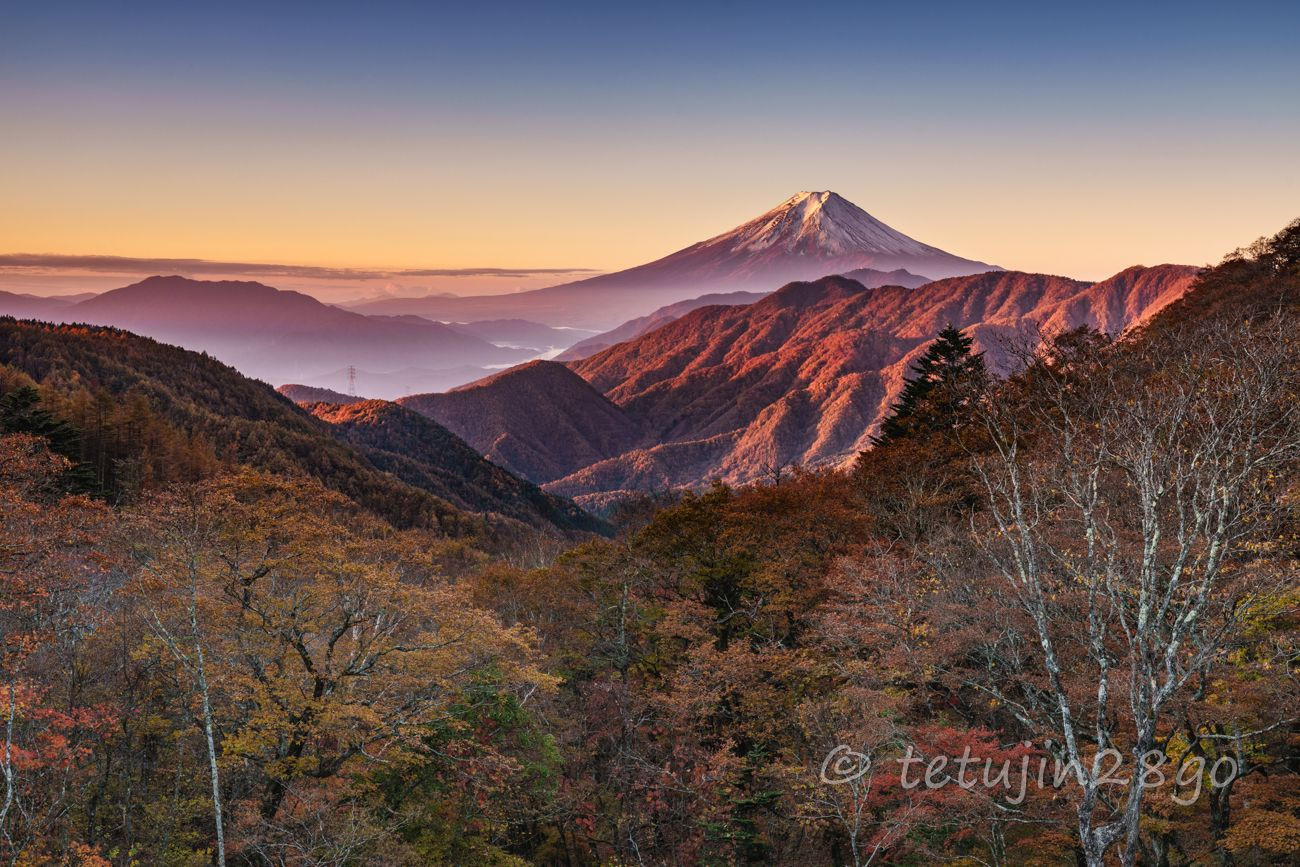 秋色富士と月_