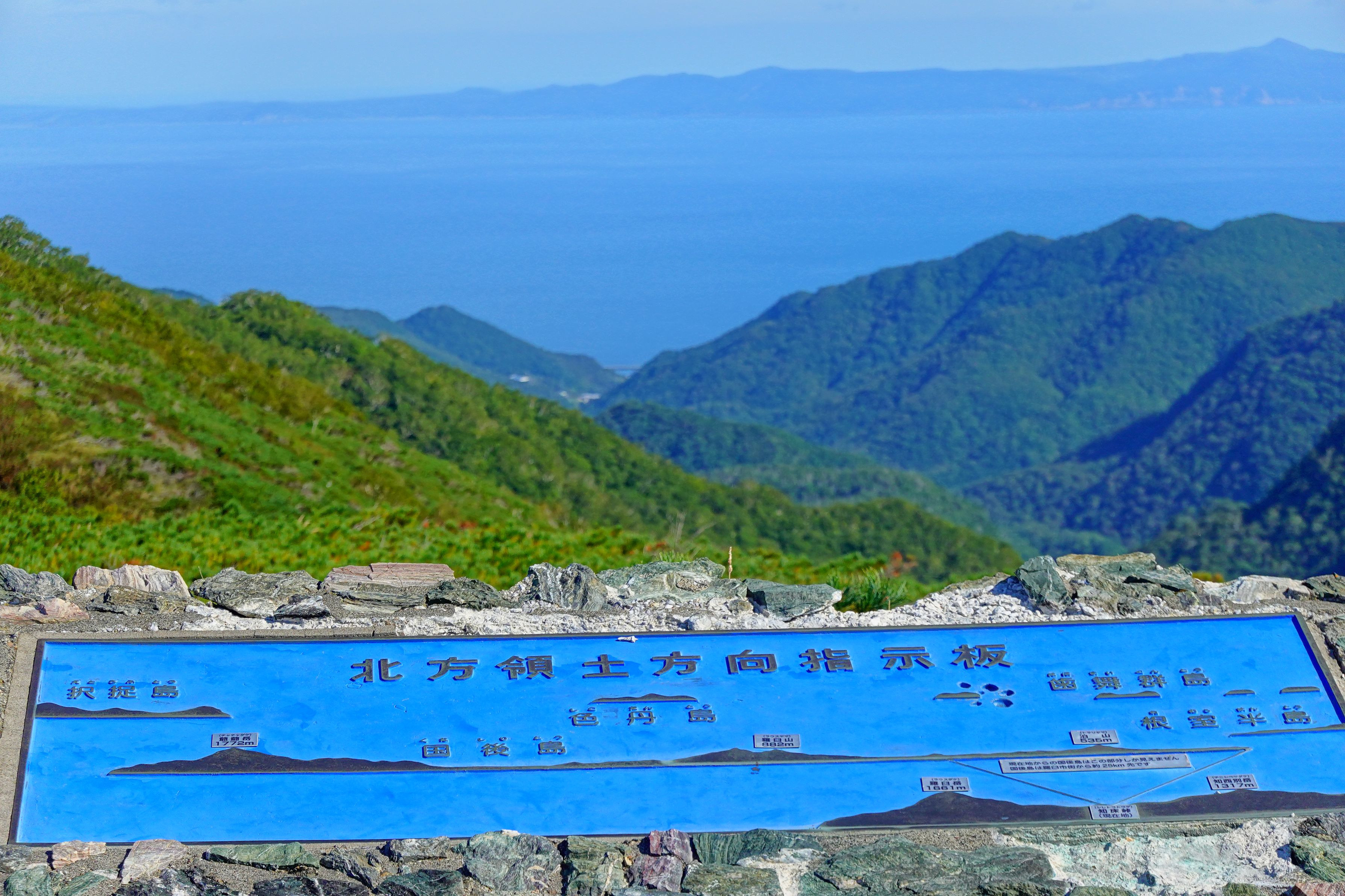 知床峠より望む北方領土 国後島 多島海の瀬戸内海で育った私としては、渡船や小型フェリーでスグに渡れる距離にある生活圏の島に見えます。