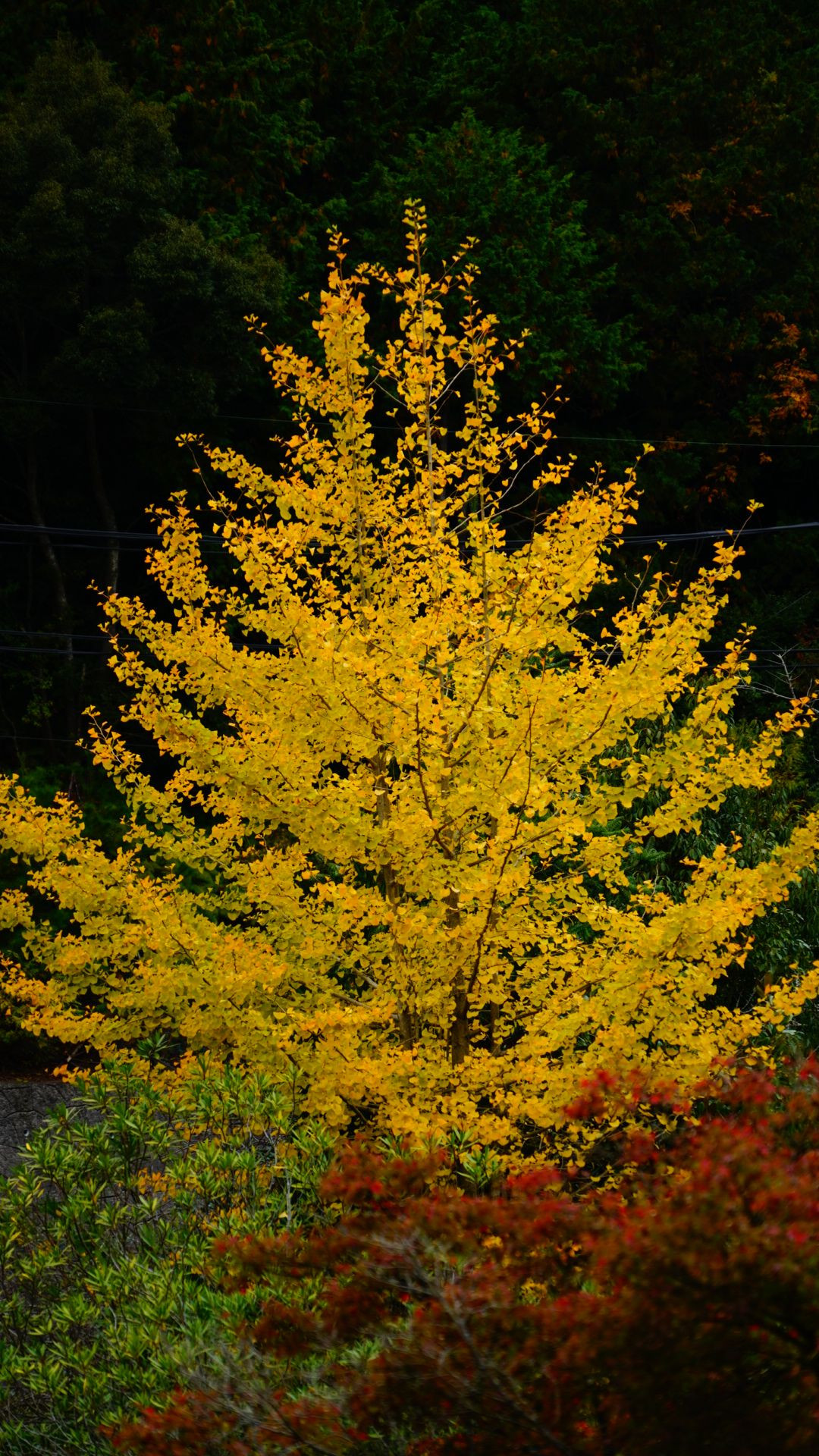 今年も金剛輪寺へ行きました。何と、例年の10〜20%程の紅葉です。仕方なく遠くの黃色をズームしてみました。