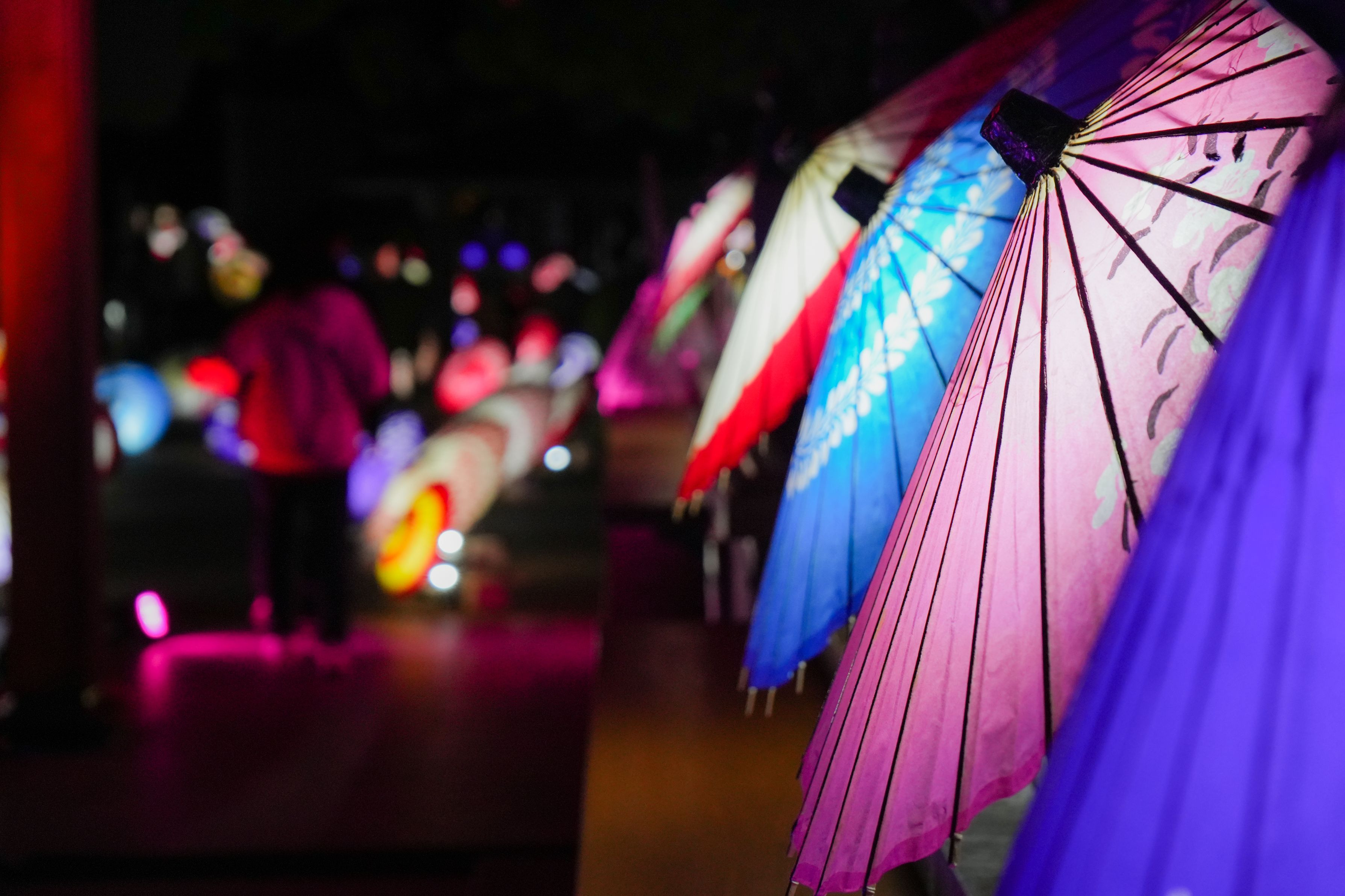 和傘のライトアップはなんかいいです。