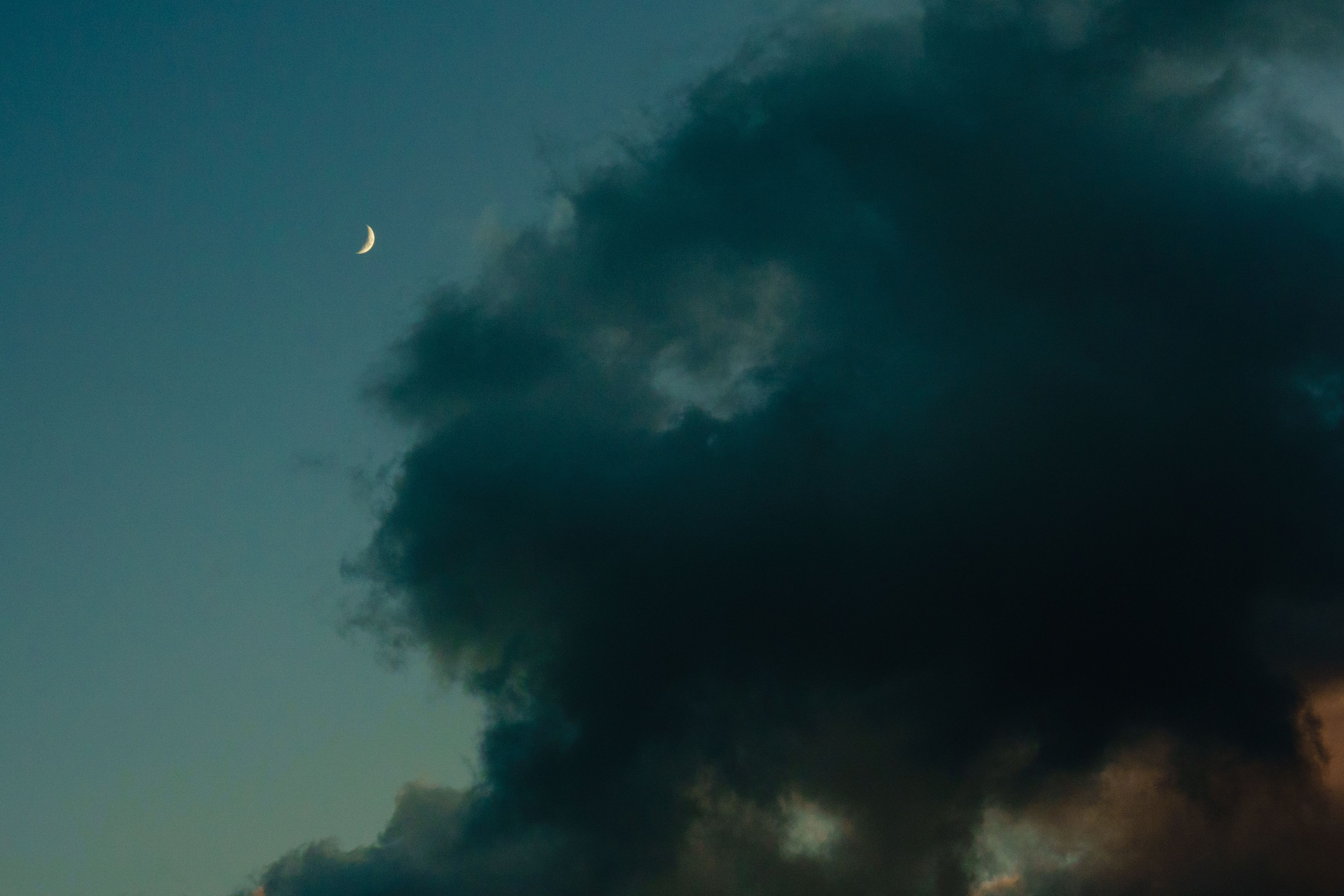 風で暴れる雲が月を覆おうとしている