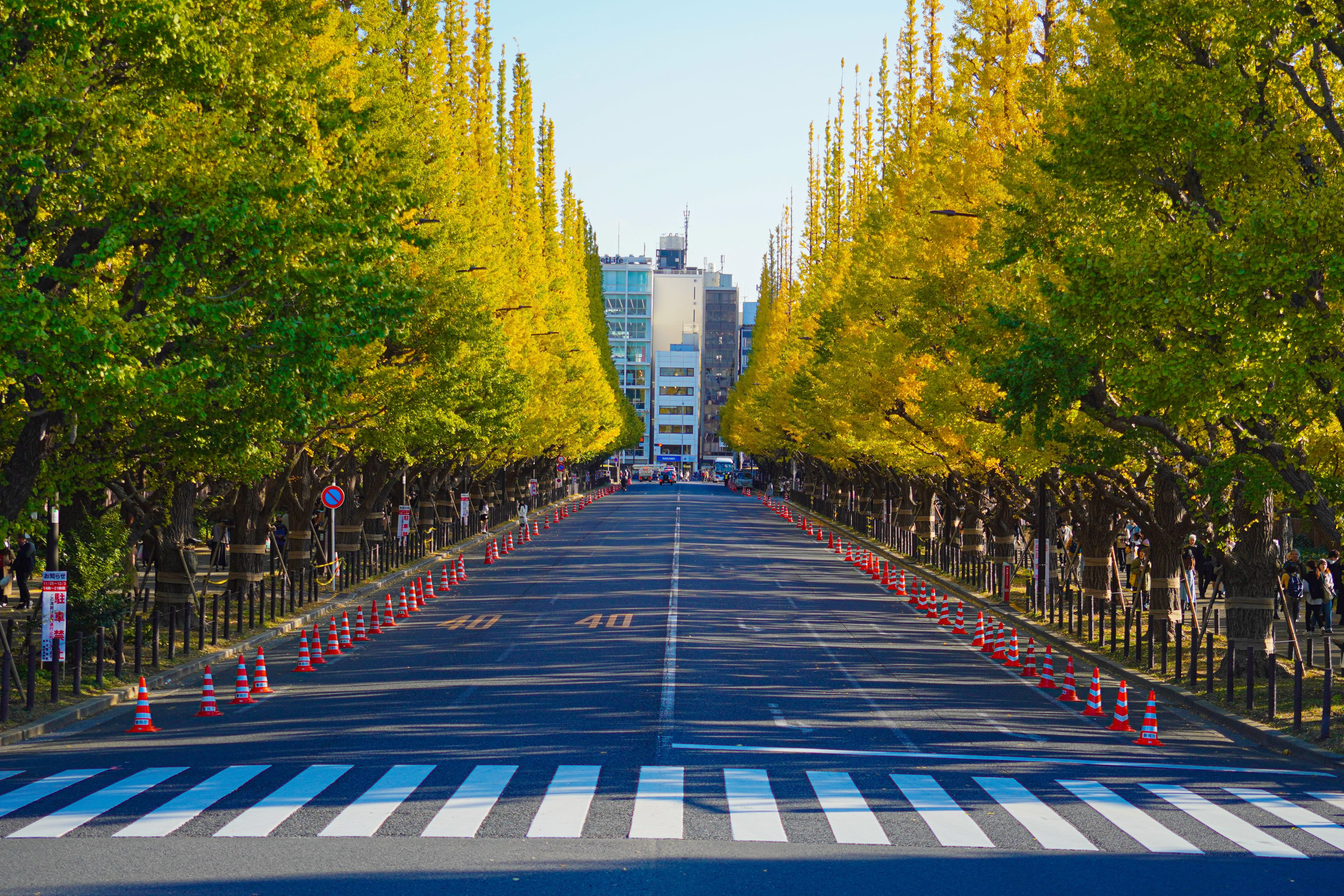最近道路の真ん中まで出てきてスマホなどで写している人が多いため警察は両端をパイロンで囲って駐車禁止にしました。(元々ここは駐車禁止ですが)