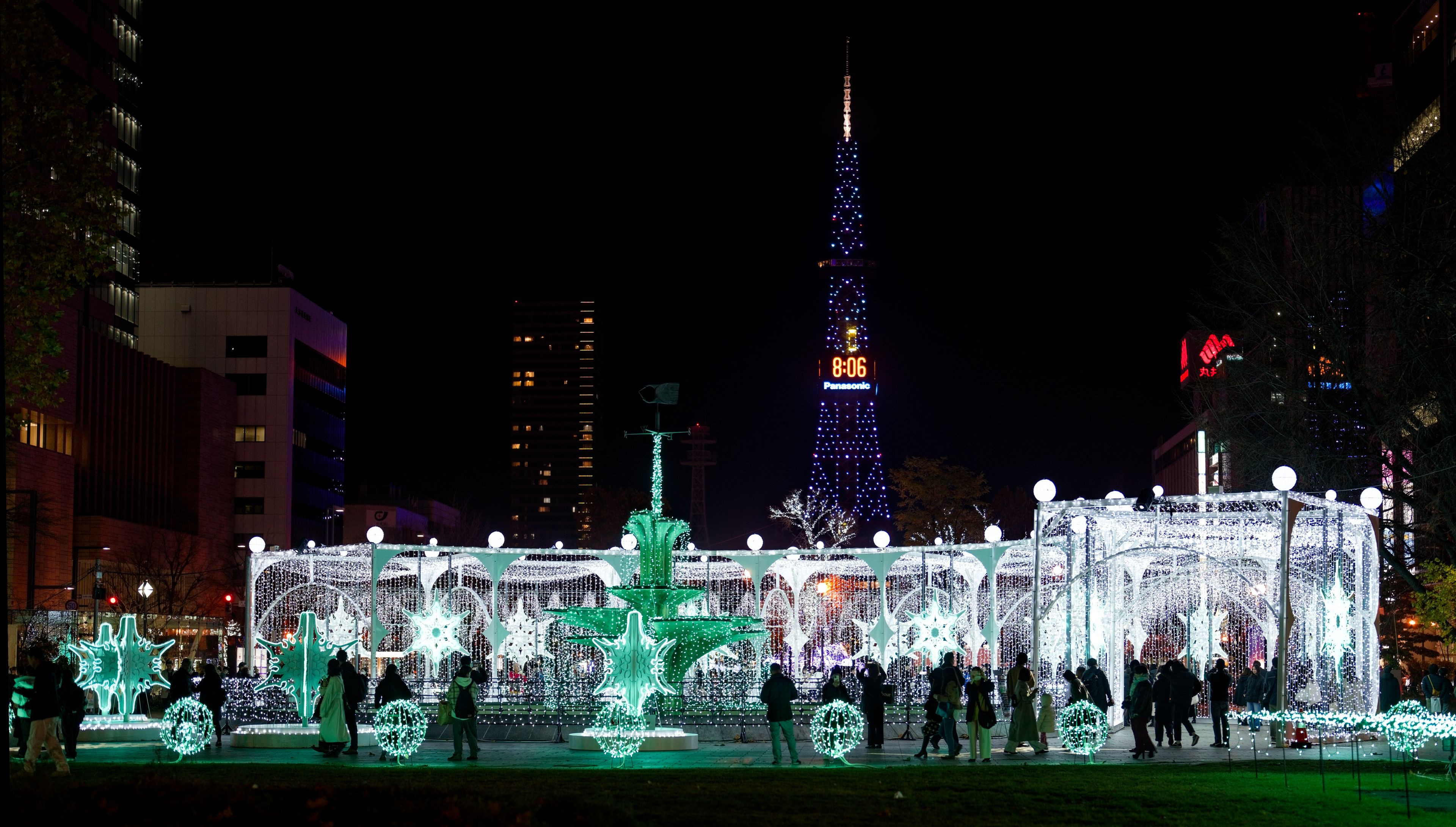 札幌のホワイトイルミネーションが始まりました。21:00近くまで見物しましたが、結構な人出でした。