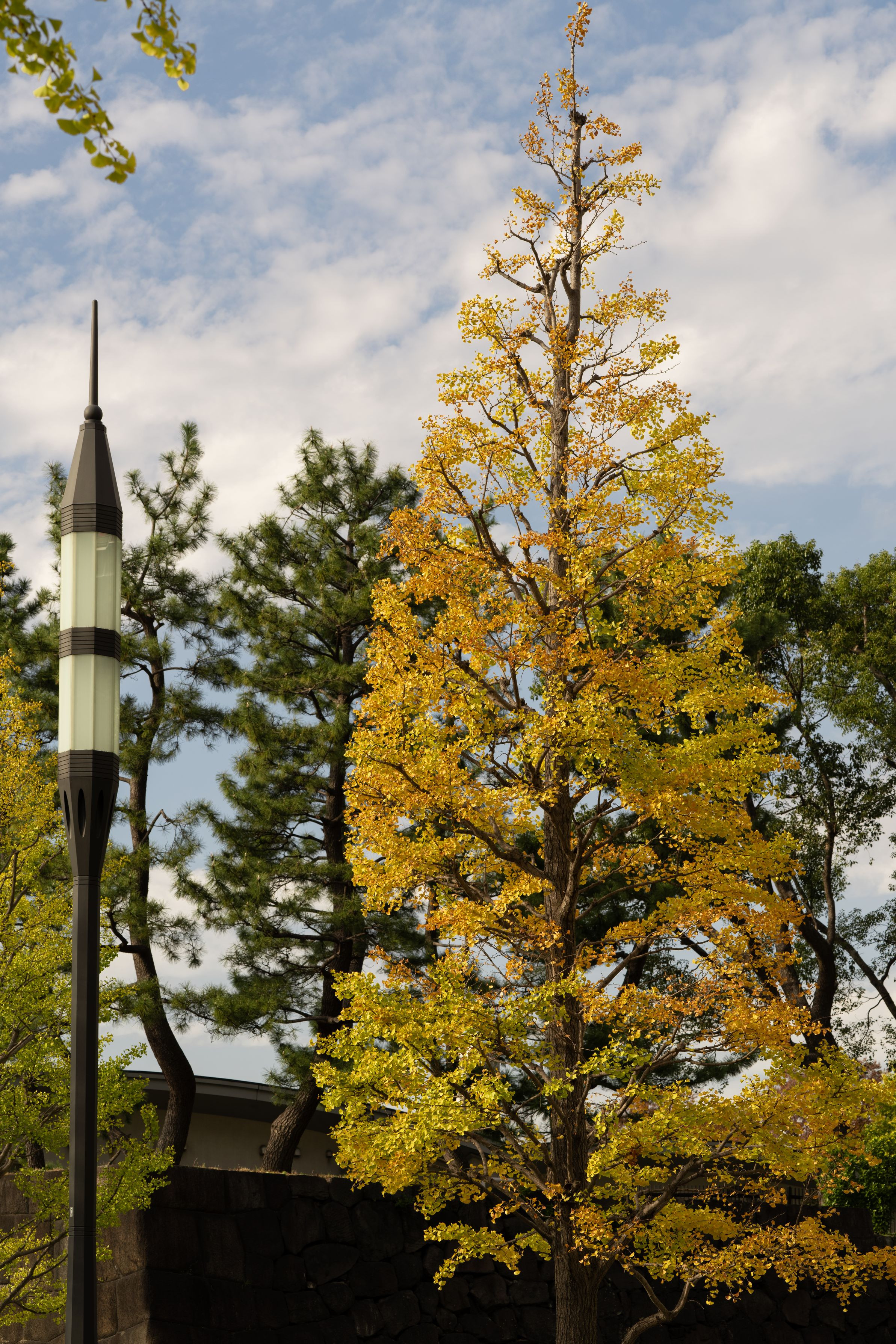 イチョウの木と街灯が2本並んで空を突き刺すようにそびえているのが面白く、シャッターをパシャリ!