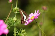 今日は、近くの公園に午後から散策です。畑に色とりどりのコスモスがいっぱい 咲いてます。そこにがアオスジアゲハがやって来ました。ピンクのコスモスに ブルーのアオスジアゲハが映えて綺麗です。